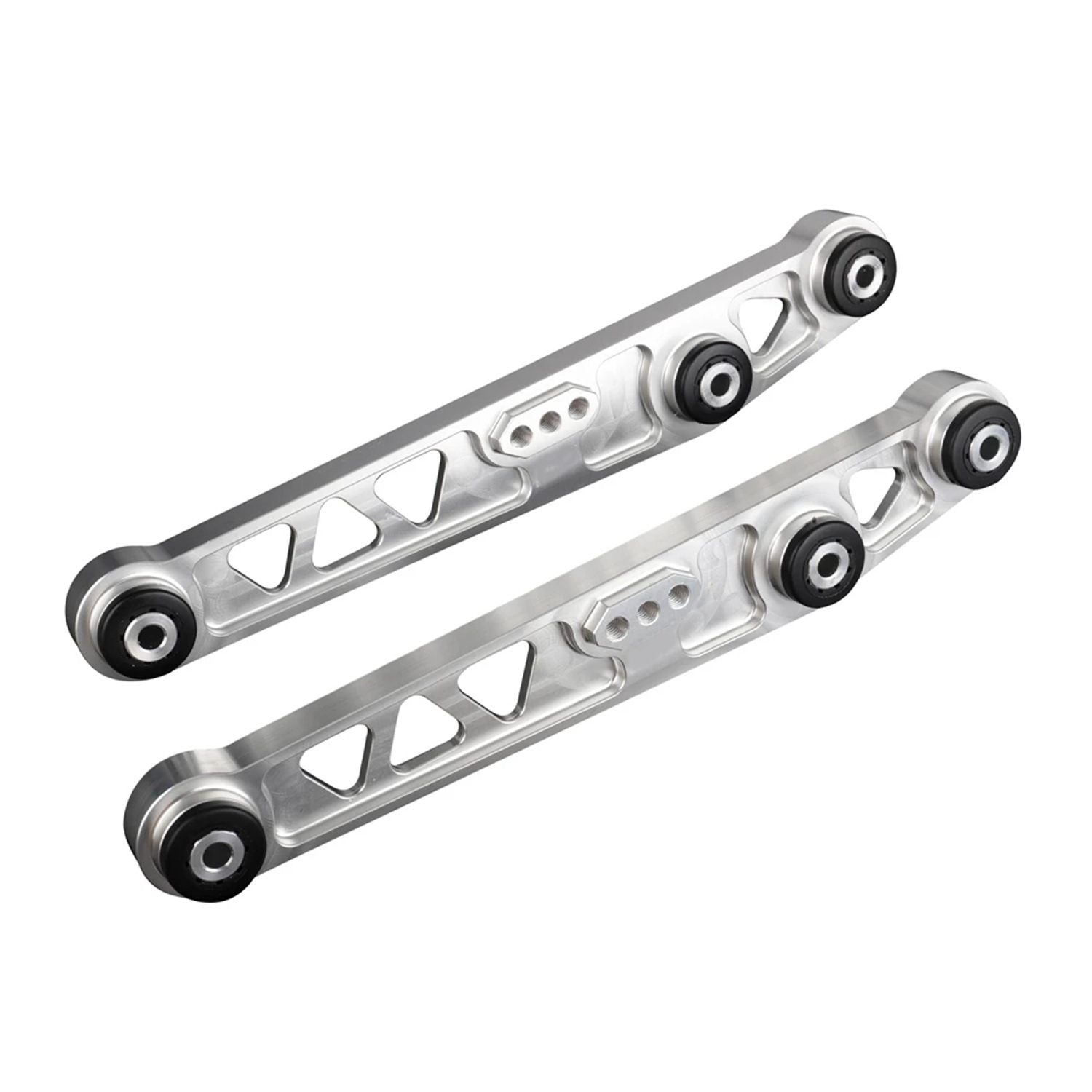 • Crafted from high-strength 6061 aluminum, these rear lower control arms offer superior durability and corrosion resistance compared to steel, ensuring long-lasting performance and reduced unsprung weight for improved handling.