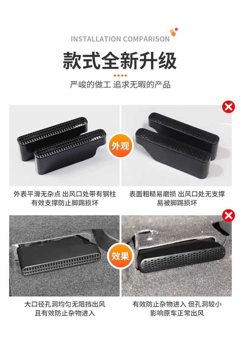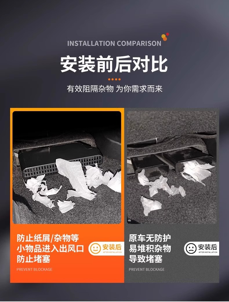 - Performance-Driven Design: Designed with a precise grille pattern to prevent trash, leaves, and small items from entering the air vent, ensuring unobstructed airflow and maintaining cabin cleanliness.
