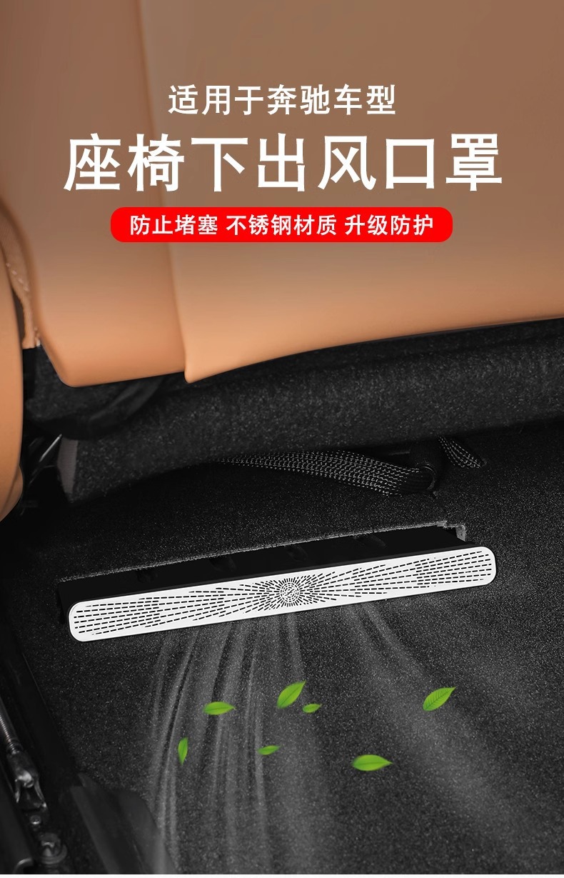 Rear Seat Air Vent Cover Trim for Mercedes-Benz C-Class E-Class A-Class C260L E300L GLC, Stainless Steel Inner Accessory