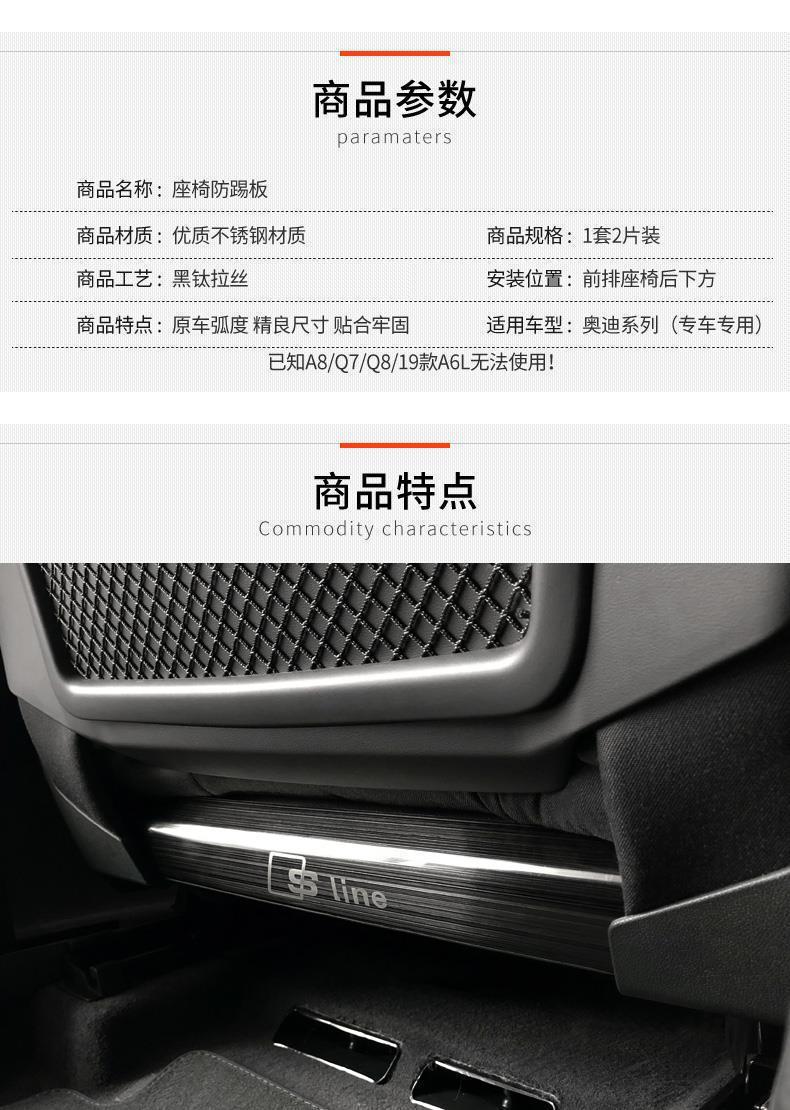 Rear Seat Anti-Kick Plate S line Stainless Steel Black Brushed for Audi A3 A4L A5 A6L A7 Q2L Q3 Q5L
