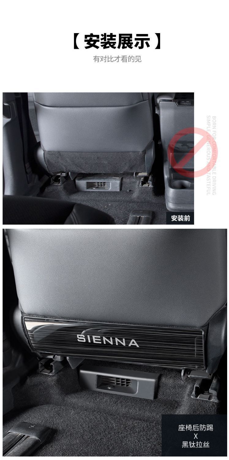 - Protective and Stylish: Designed to protect the back of your car’s front seats from kicks and scuffs while adding a sleek, modern touch to your interior with its black brushed finish and engraved “SIEN” detail.