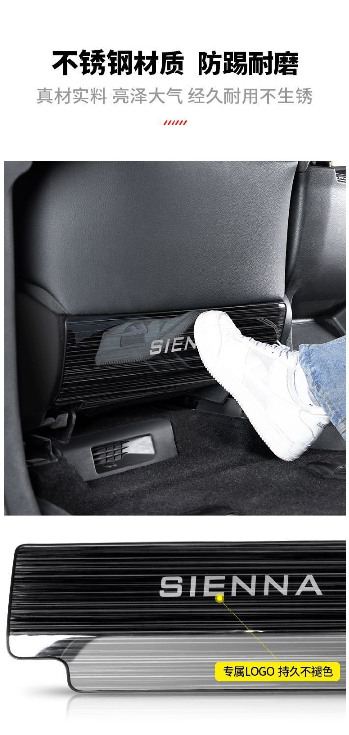 Rear Seat Anti-Kick Plate Trim Cover in Black Brushed Stainless Steel for Toyota Sienna (Siena / Senna) / Granvia