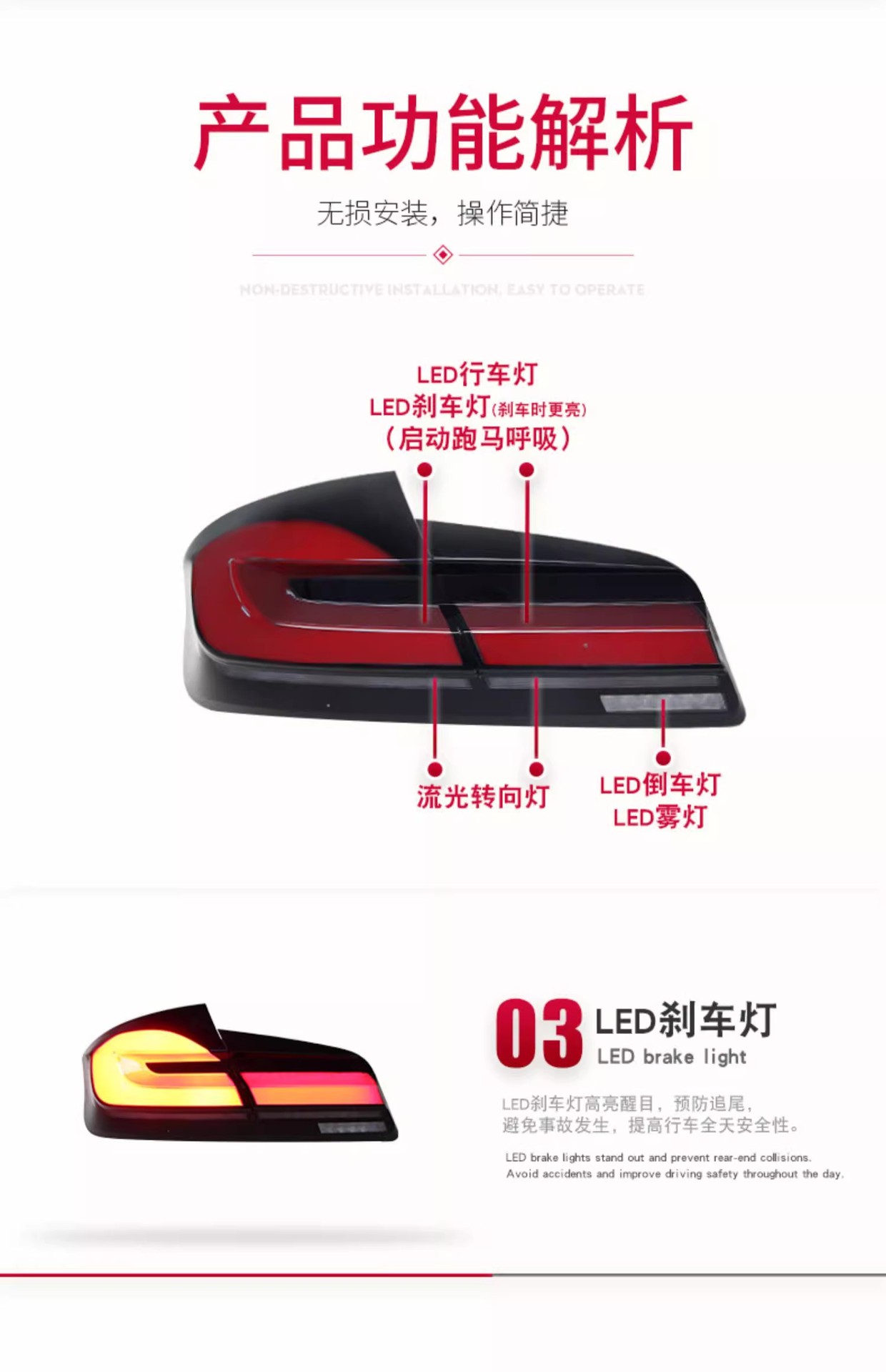 Rear Tail Light Assembly (LED Running Light, Sequential Turn Signal) for BMW 5 Series F10 F18 (2011-2017)