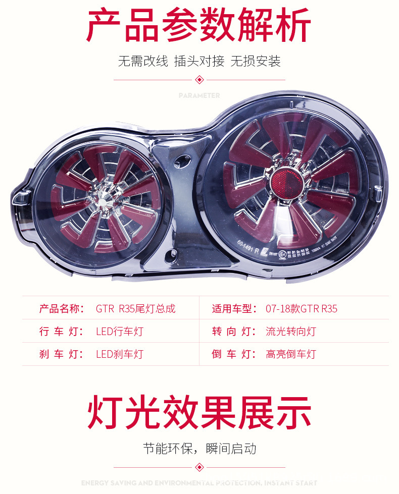 - Modern Aesthetic Upgrade: Features dynamic LED daytime running lights and flowing turn signals, transforming the rear appearance of your GTR R35 with a modern, aggressive, and distinctive look.