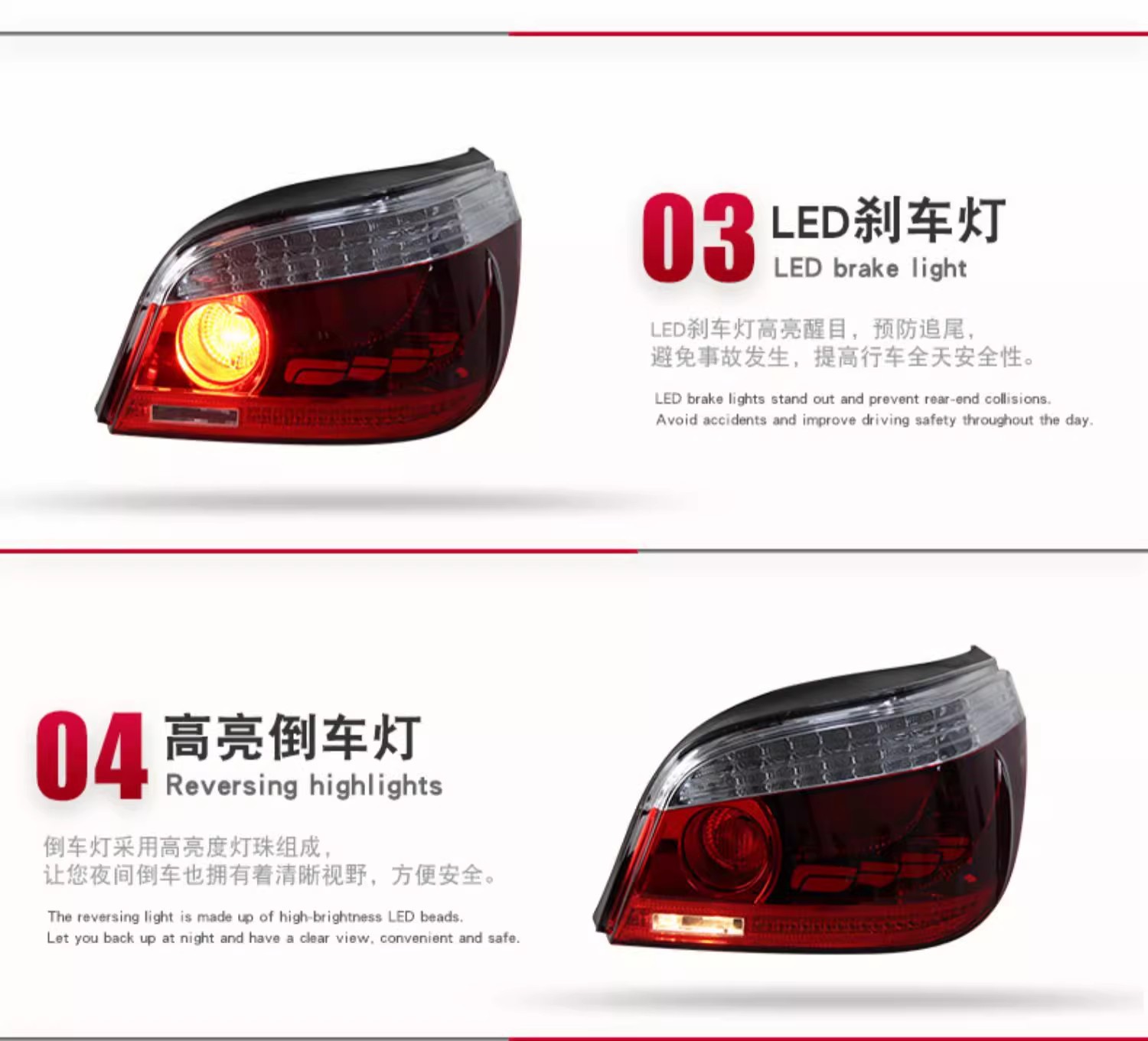 Rear Tail Light Assembly LED Daytime Running Light Sequential Turn Signal Lamps for BMW 5 Series E60 (2003-2010)