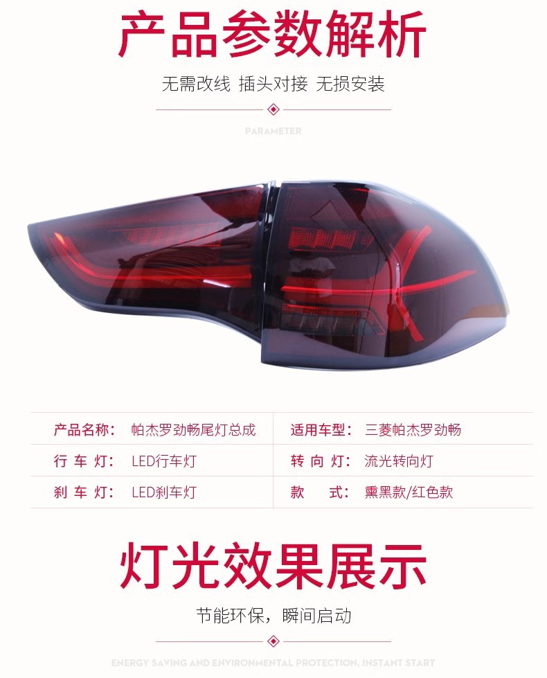 Rear Tail Light Assembly LED Daytime Running Brake Turn Signal Lamp for Mitsubishi Pajero Sport