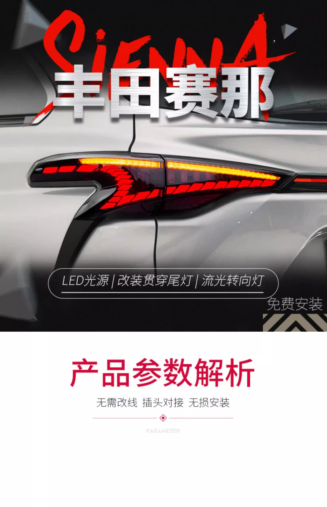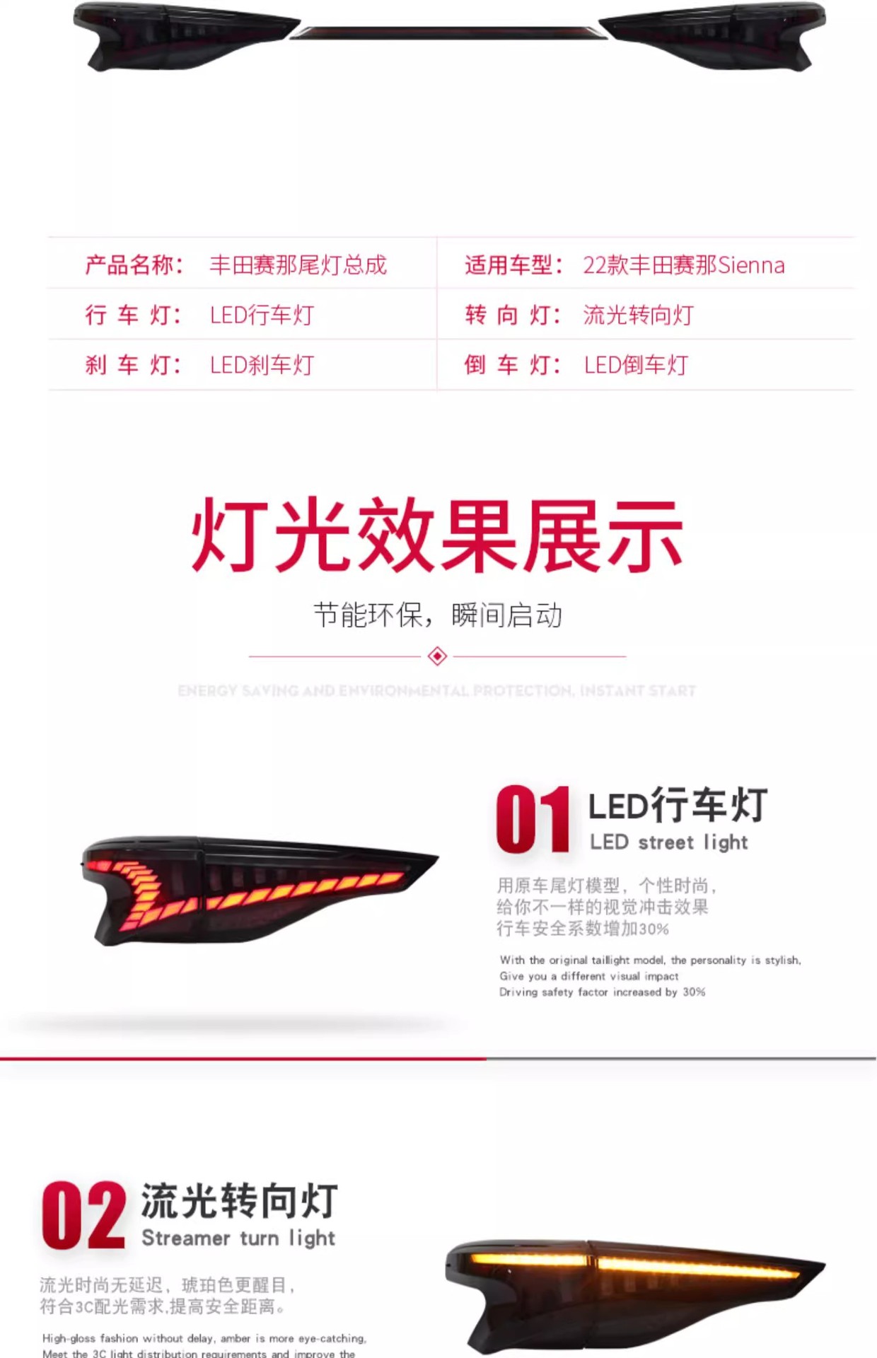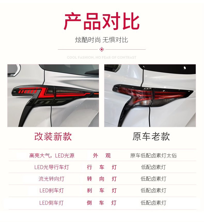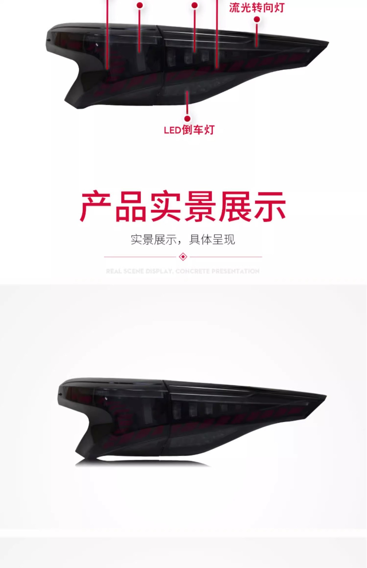 - Stylish LED Design: Features a distinctive full-width dragon scale LED design with dynamic sequential turn signals, enhancing your vehicle’s aesthetic appeal and modern look.