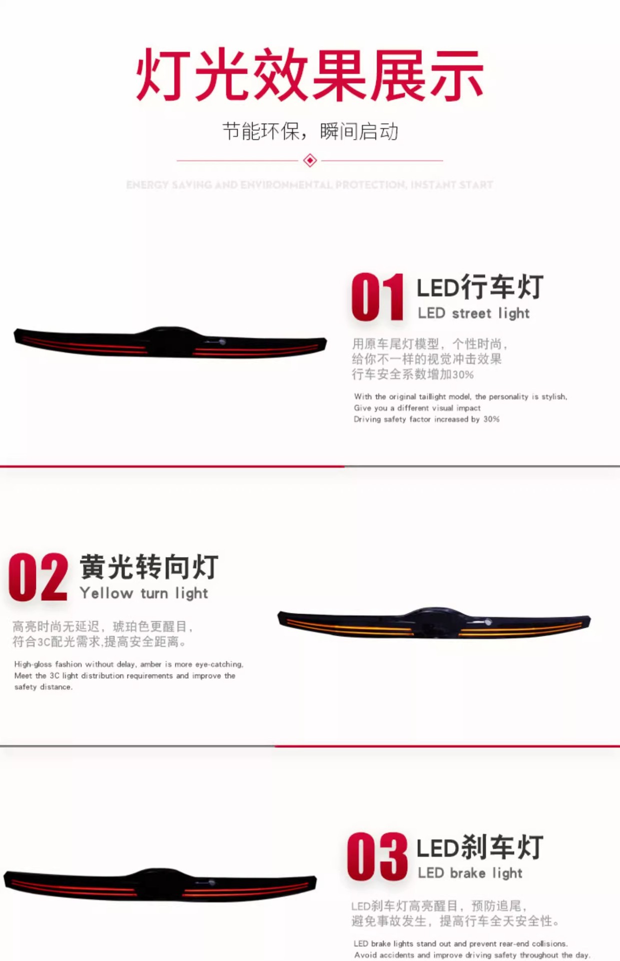 - Enhanced Style & Safety: Features a sleek, through-type design with LED light guide for running lights, bright brake lights, and dynamic turn signals, significantly improving vehicle visibility and aesthetic appeal.