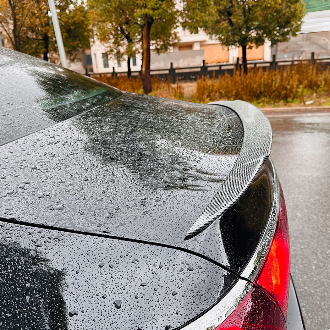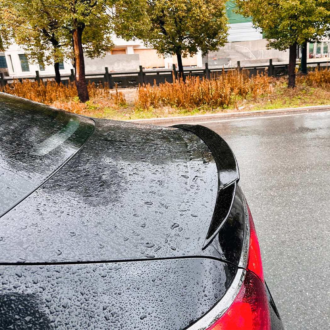 - Enhanced Style & Aerodynamics: Available in sleek Piano Black or sophisticated Carbon Fiber Pattern, this rear spoiler adds an aggressive, sporty look while improving airflow over your vehicle for enhanced stability at higher speeds.
