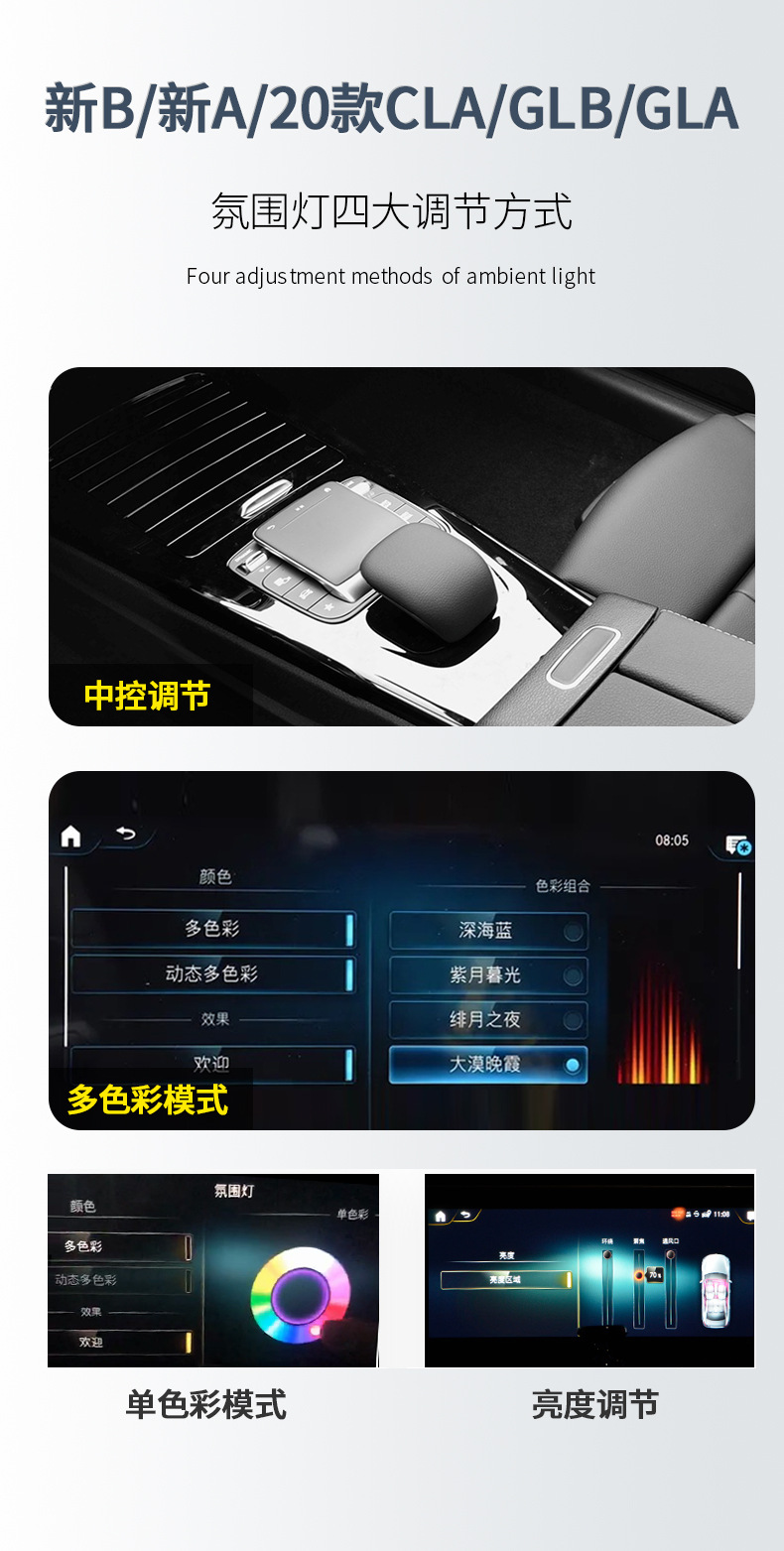 - Premium Illumination: Constructed with high-quality LED components, this ambient light system offers vibrant 64-color synchronization, enhancing the interior aesthetics and creating a luxurious driving atmosphere.