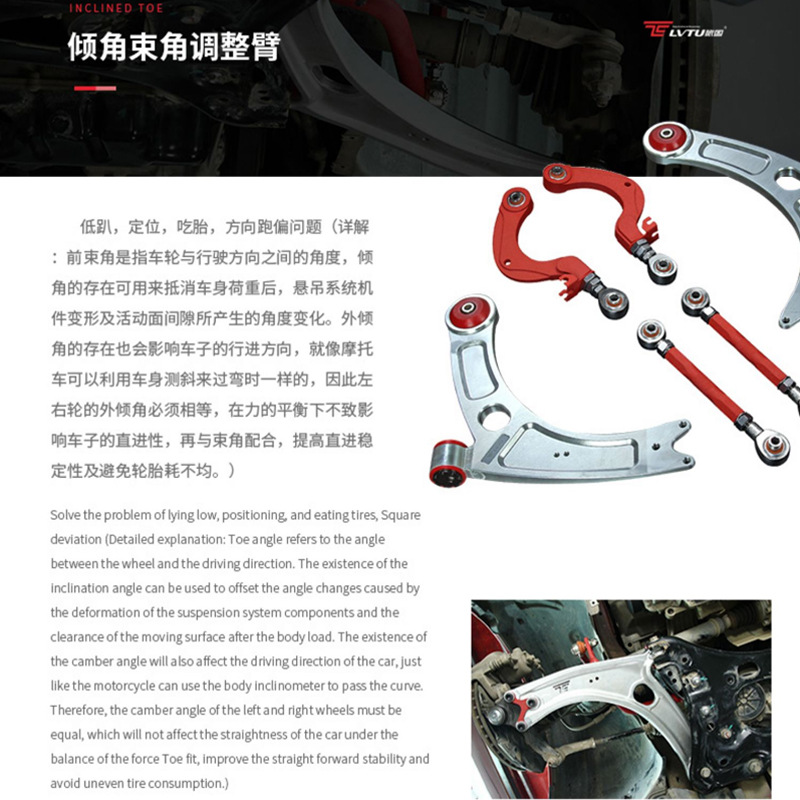 - Enhanced Adjustability: Features fully adjustable design for optimizing rear wheel camber and toe settings, allowing for precise alignment correction, improved tire wear, and enhanced driving stability.