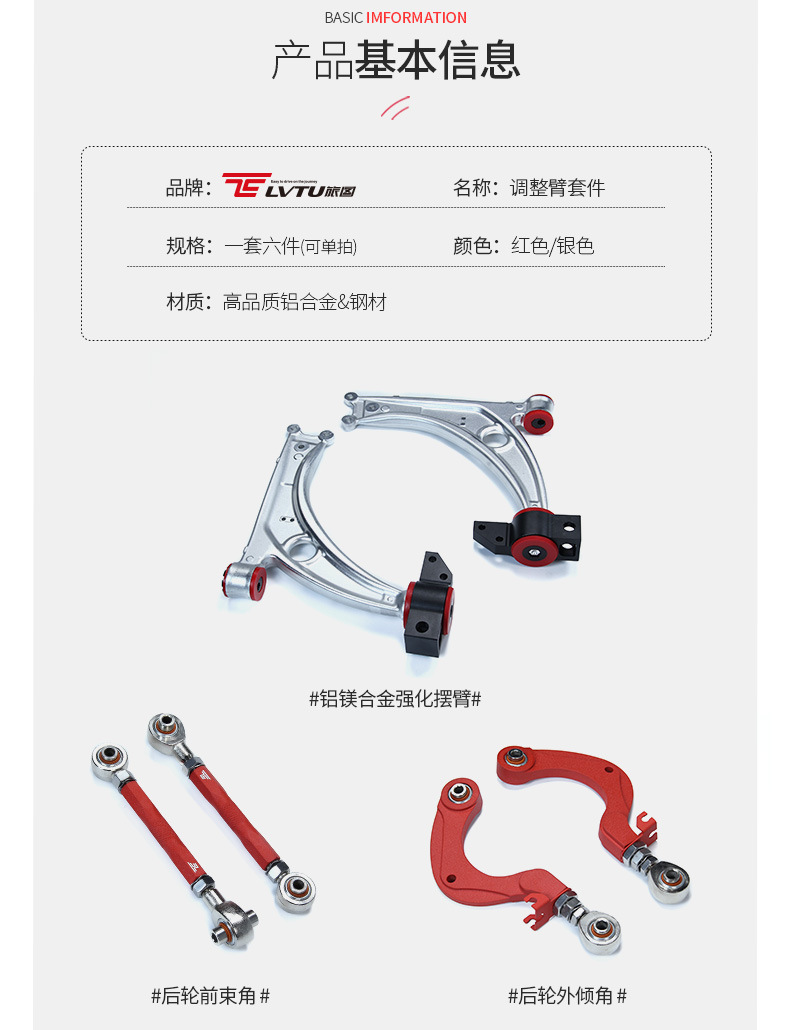 - Optimized Wheel Alignment: Allows for precise adjustment of rear wheel toe and camber, correcting tire wear issues and improving handling stability for a smoother drive.