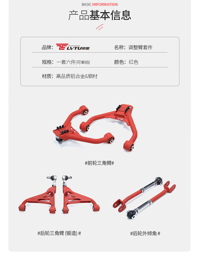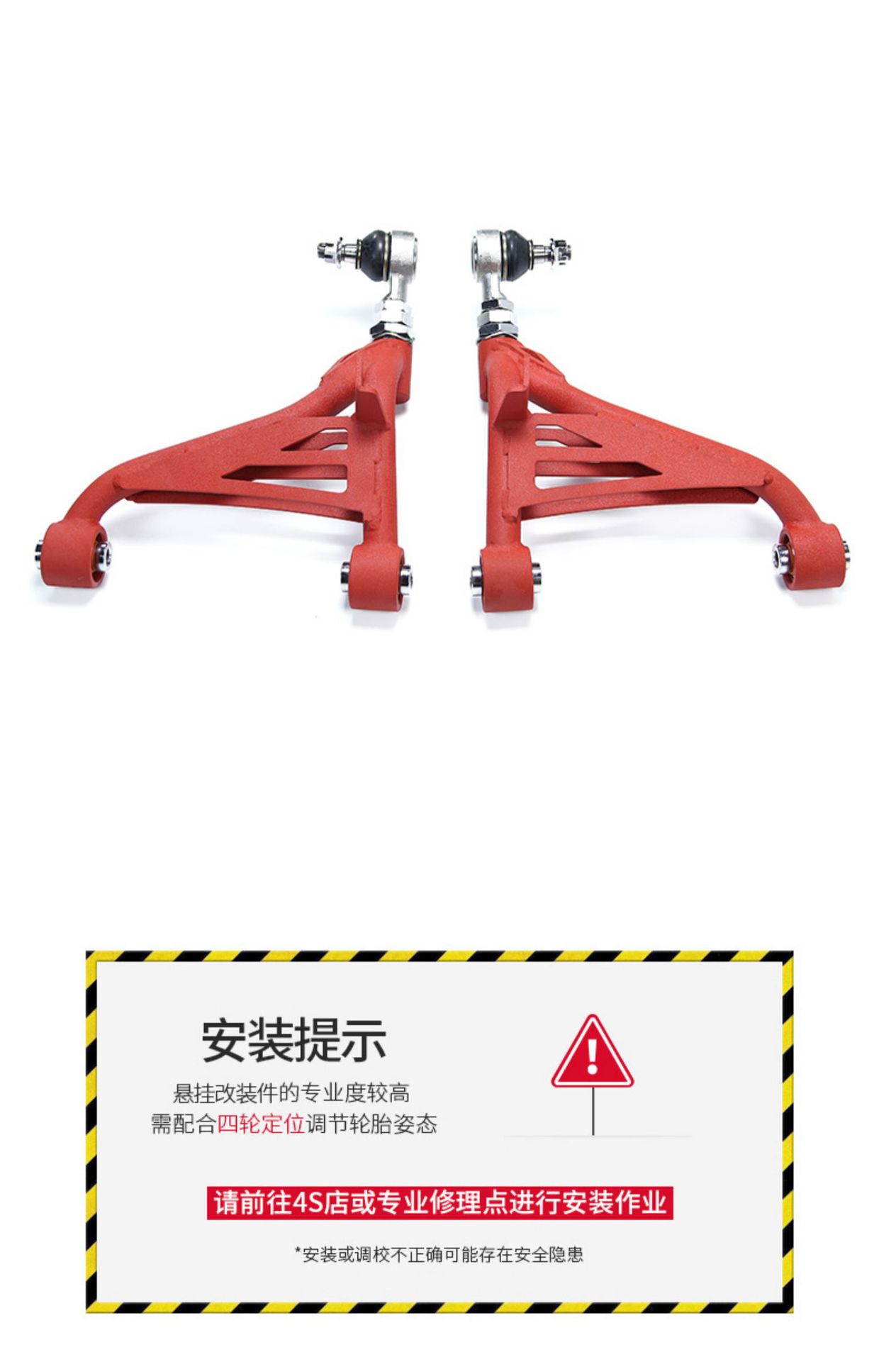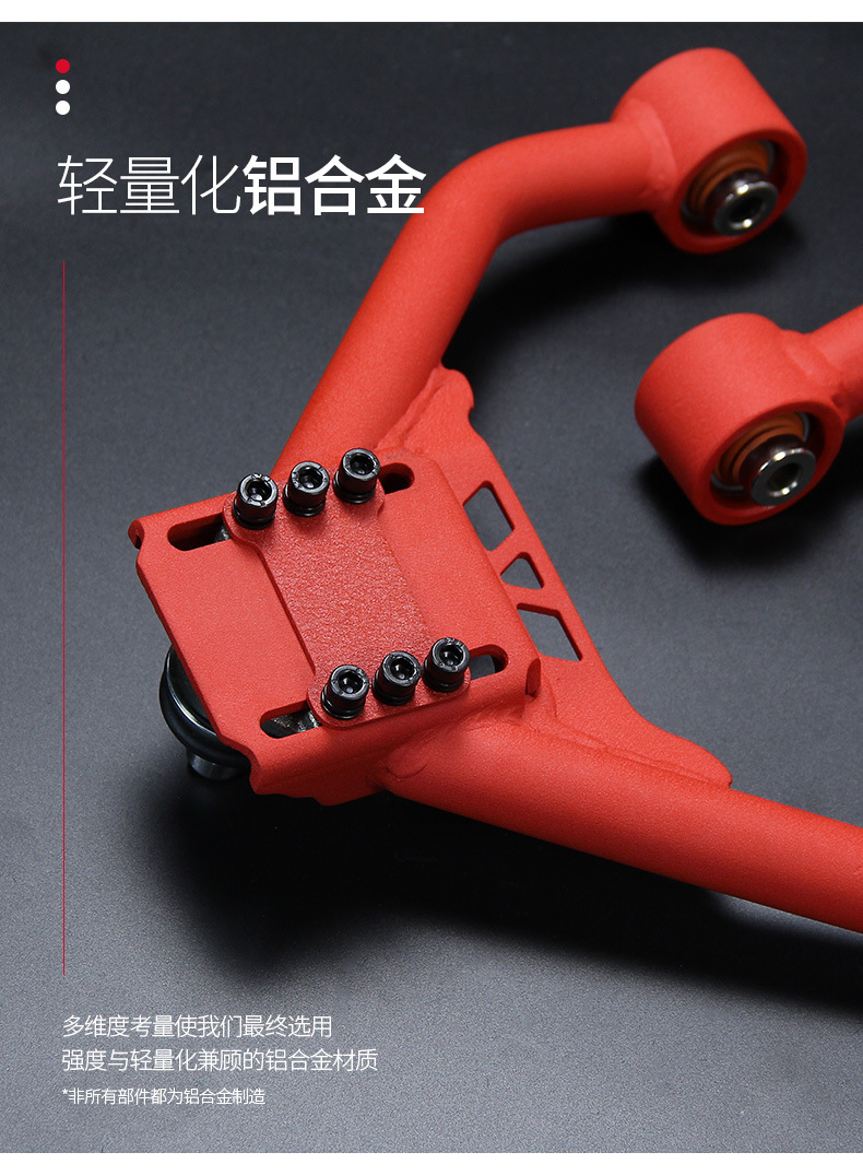 - Complete Kit: Includes 1 Pair of Red Adjustable Control Arms (front or rear option based on selection), essential for suspension tuning and enhancing the performance and stability of your vehicle.