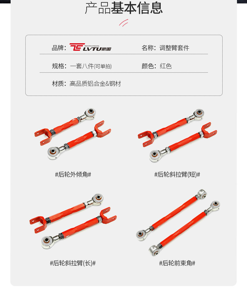 - Enhanced Handling & Red Aesthetic: Features a striking red finish, adding a custom, sporty look to your vehicle while significantly improving handling, stability, and tire wear through precise camber adjustment.