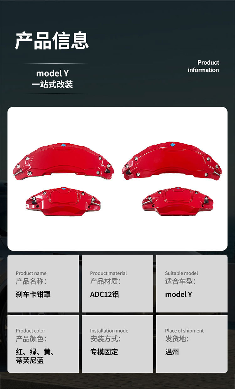 Red Aluminum Alloy Brake Caliper Covers for Tesla Model Y (2025 Refreshed Version)