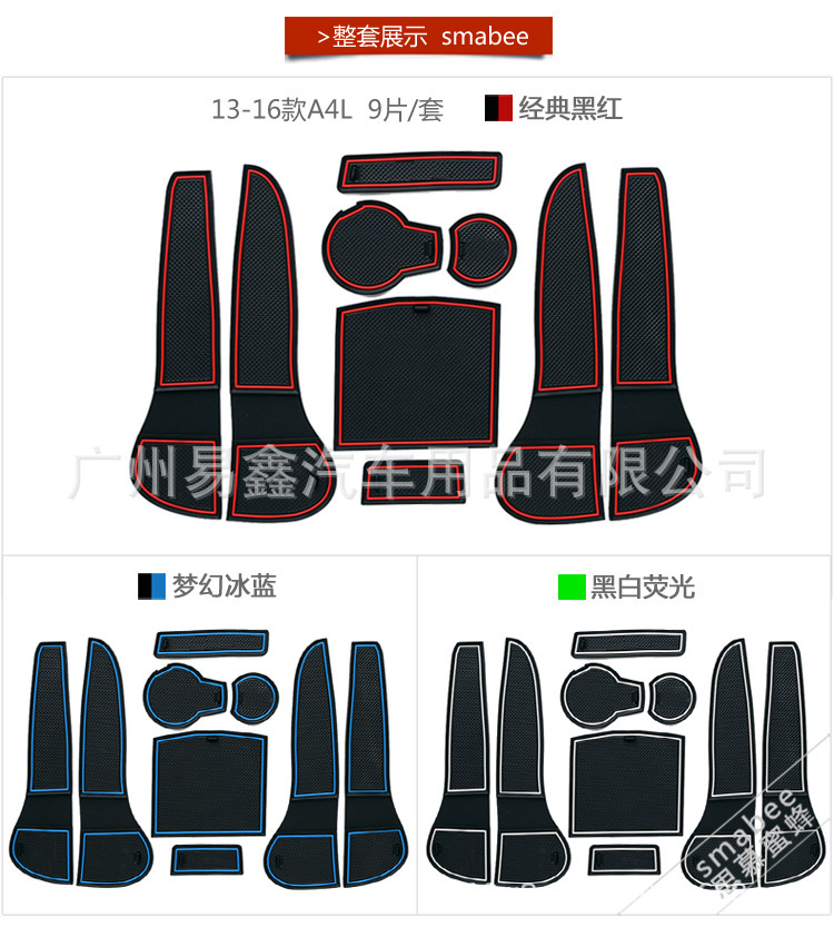 Red Anti-Dust Mat Set Car Door Slot Pad Water Cup Holder Armrest Storage Box Pad for Audi A4L A5 2013-2016