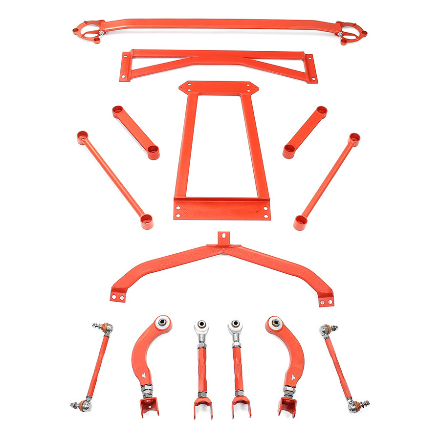 - Comprehensive Chassis Upgrade: This kit includes multiple components such as front and rear sway bars, lower control arms, chassis braces, and strut tower bars, providing a complete solution for suspension and handling improvement.