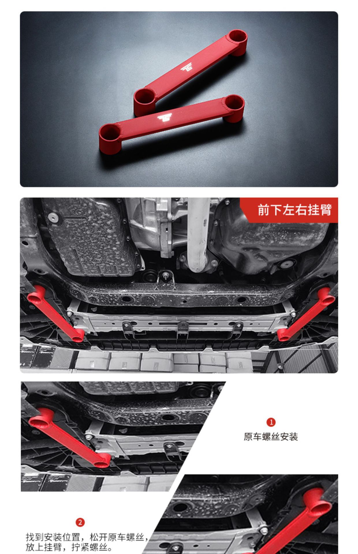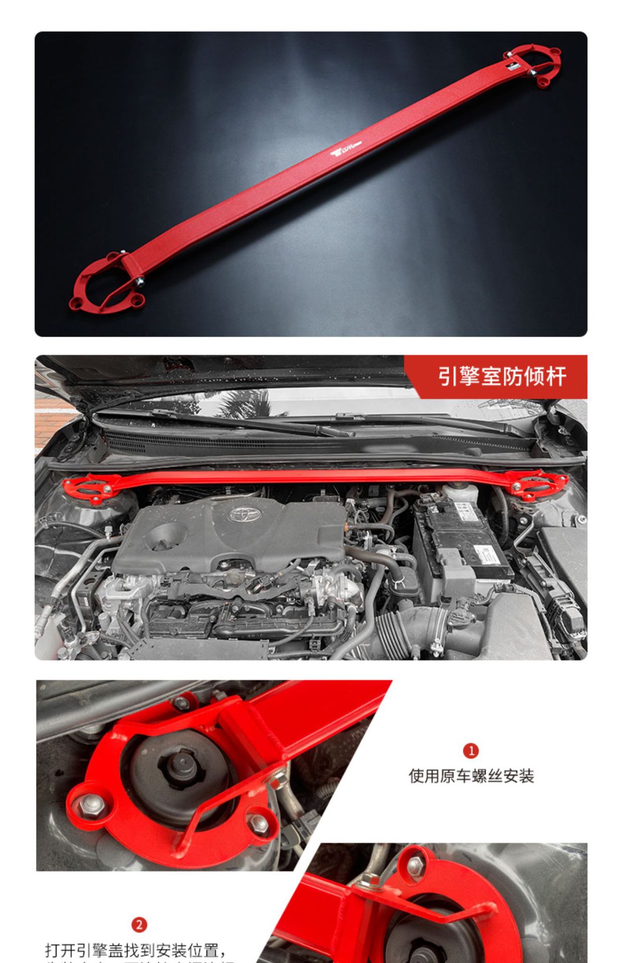 Red Black Aluminum Alloy Chassis Reinforcement Kits for Toyota Camry XV70 2017-2023