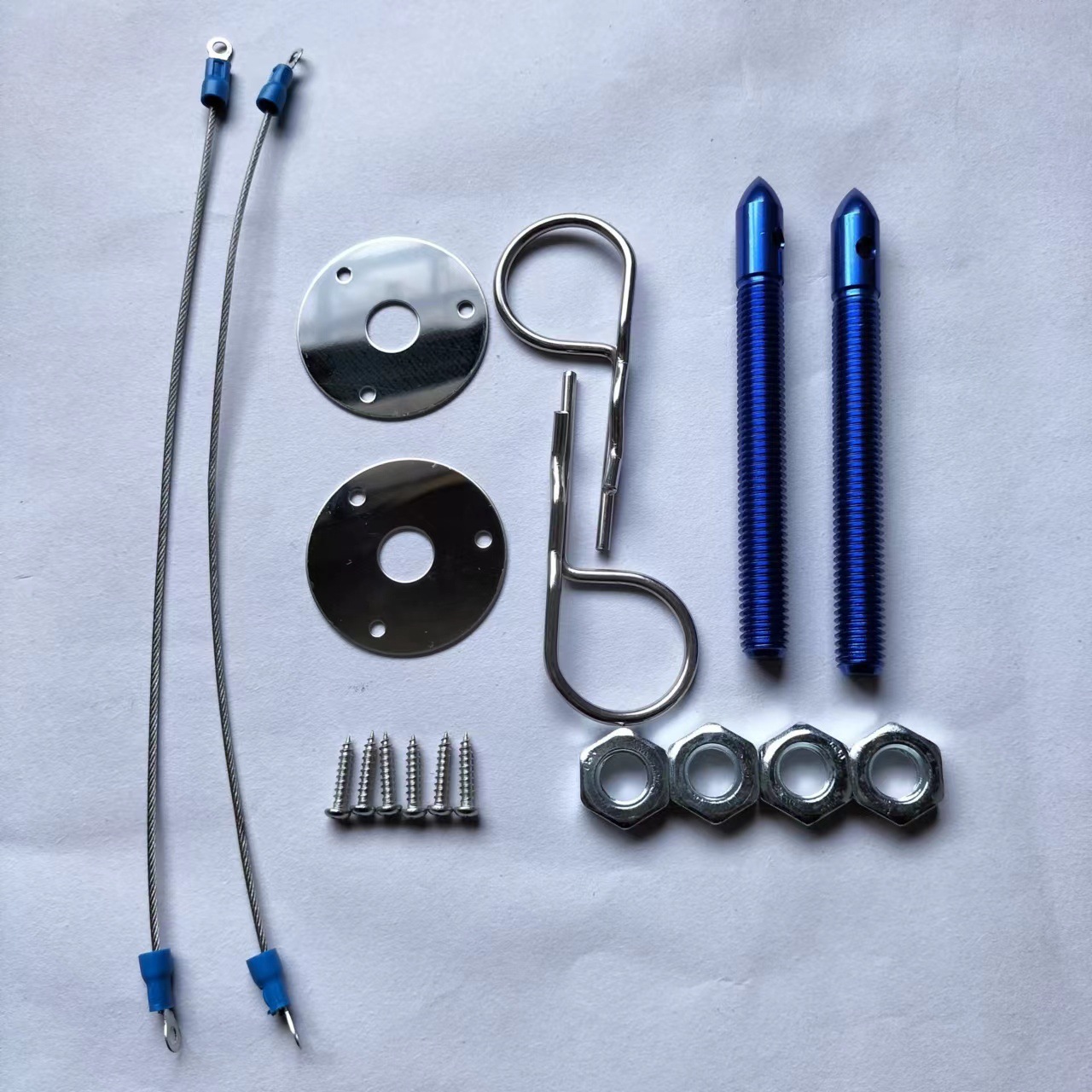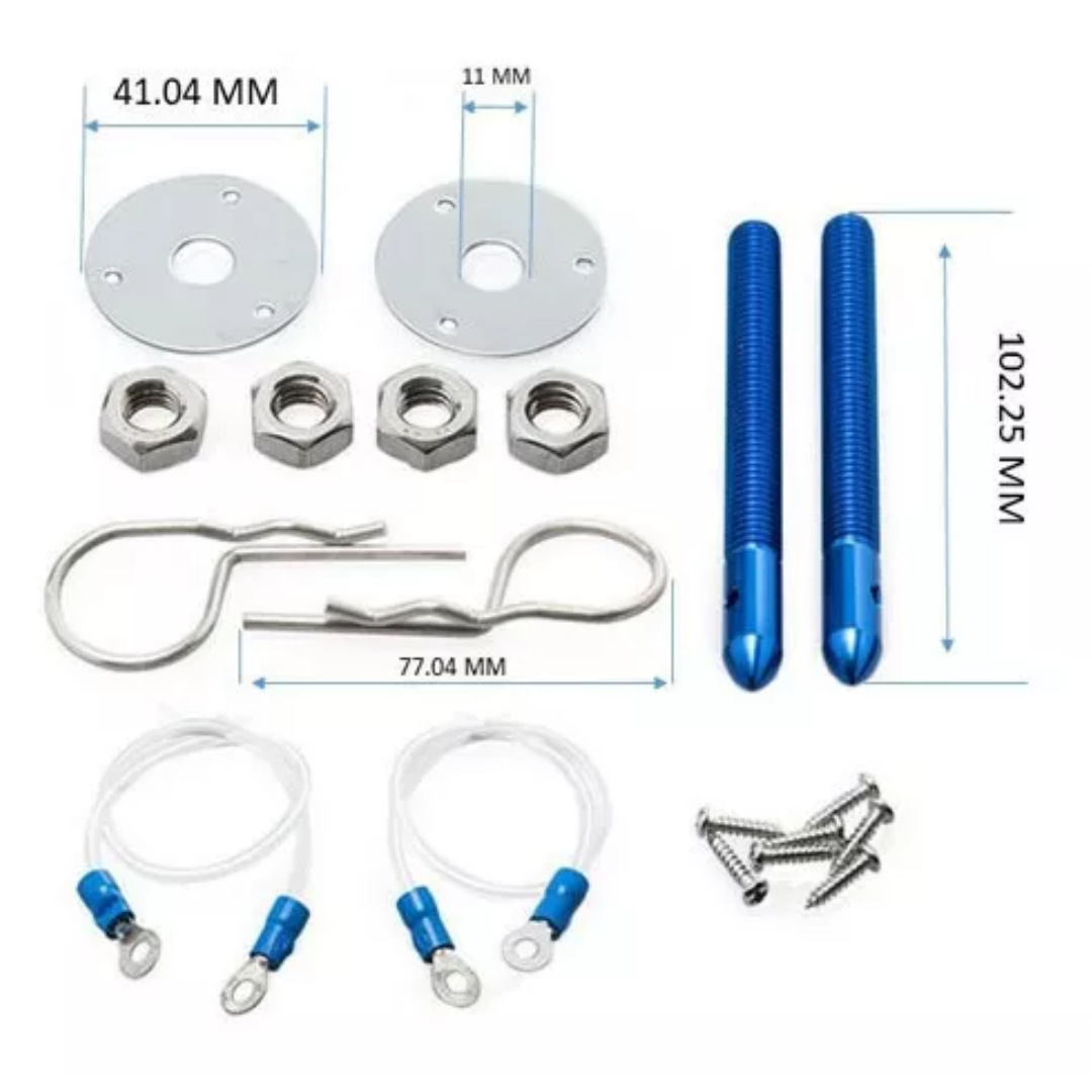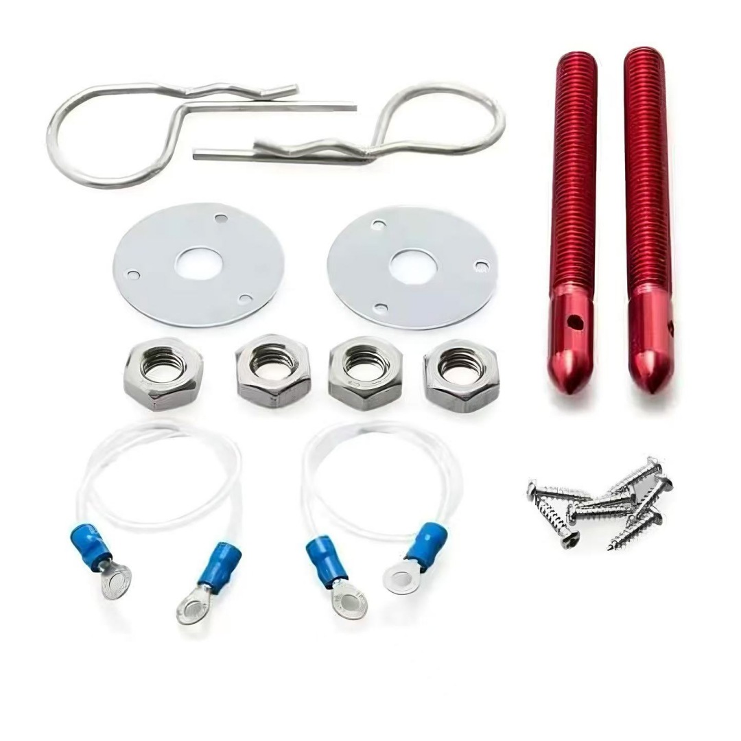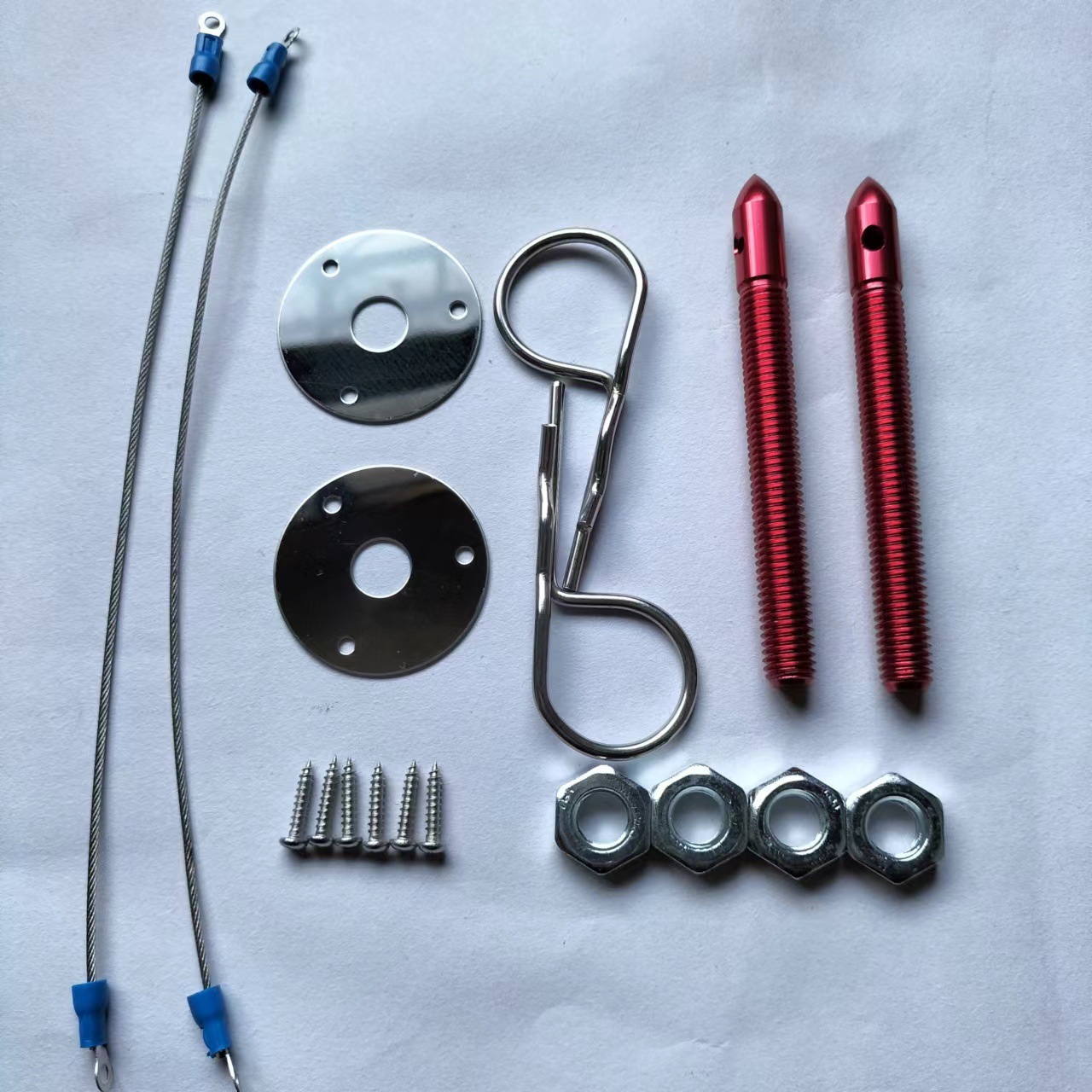- Enhanced Racing Style: Available in vibrant red, sleek black, and bold blue, these draw-pull style hood pin locks add a distinctive racing aesthetic to your vehicle, instantly elevating its appearance and showcasing a personalized touch.
