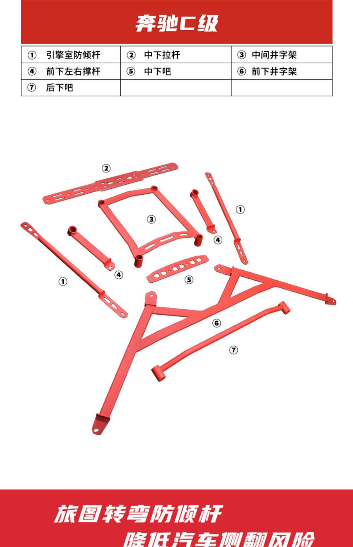 - Sporty Design & Style Upgrade: Available in sleek red and classic black, this upper strut bar not only enhances chassis stiffness but also adds a powerful, aggressive aesthetic to your Mercedes Benz C-Class engine bay.