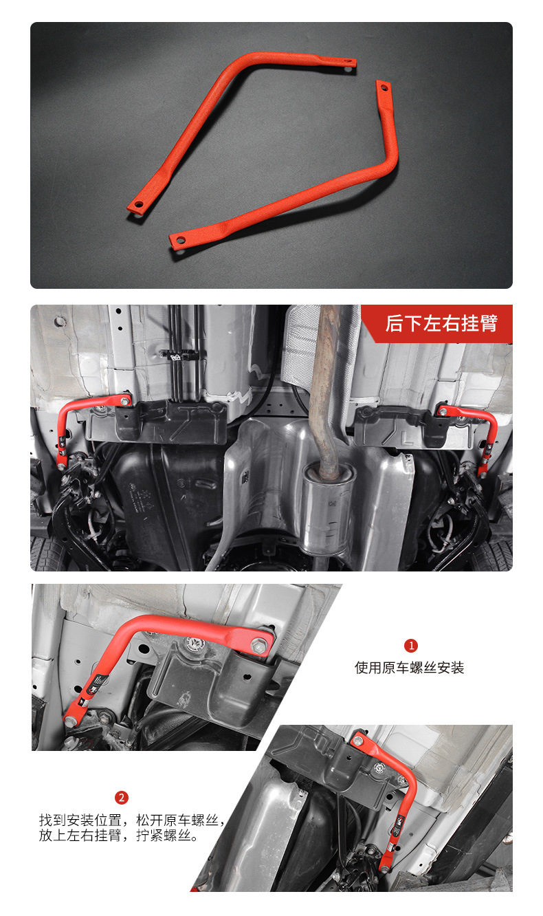 Red Body Reinforcement Under Chassis Balancing Rod for Haima S5 (2014-2022) Engine Bay Strut Bar, Front Lower Brace, Rear Lower Brace, Rear Lower Arm, Front Sway Bar Link, Rear Trailing Arm