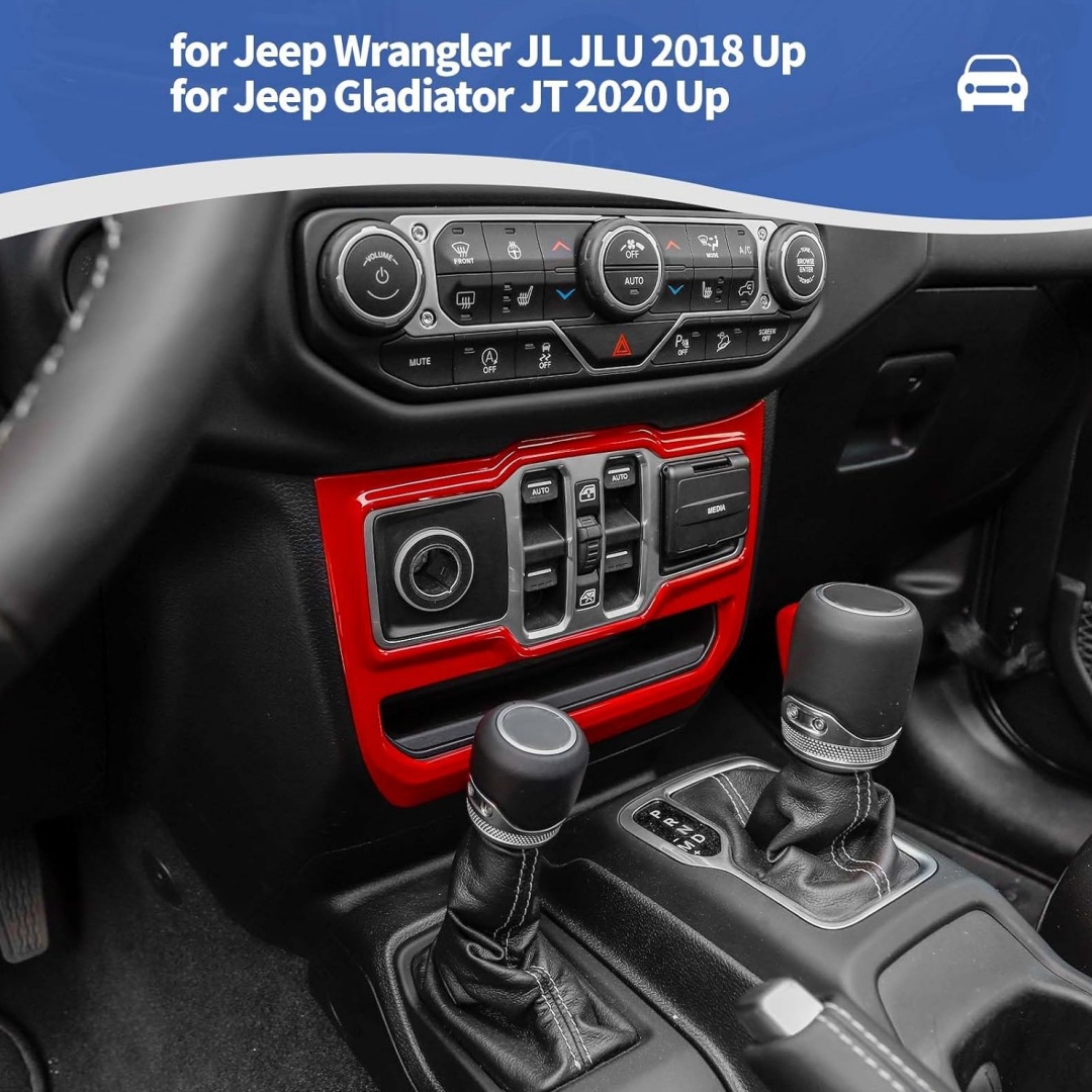 - Package Includes: Each set contains 1 piece of center console window glass lift control panel decoration cover, providing an instant upgrade to your Jeep Wrangler JL interior.
