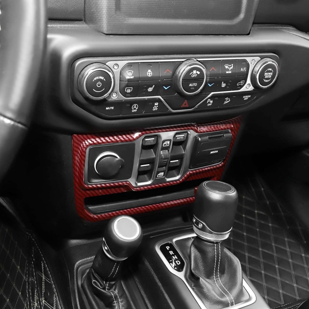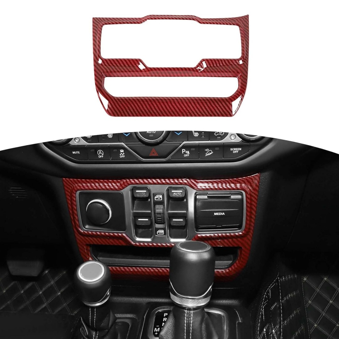 Red Carbon Fiber ABS Center Console Window Glass Lift Control Panel Trim for Jeep Wrangler JL (2018-2022)