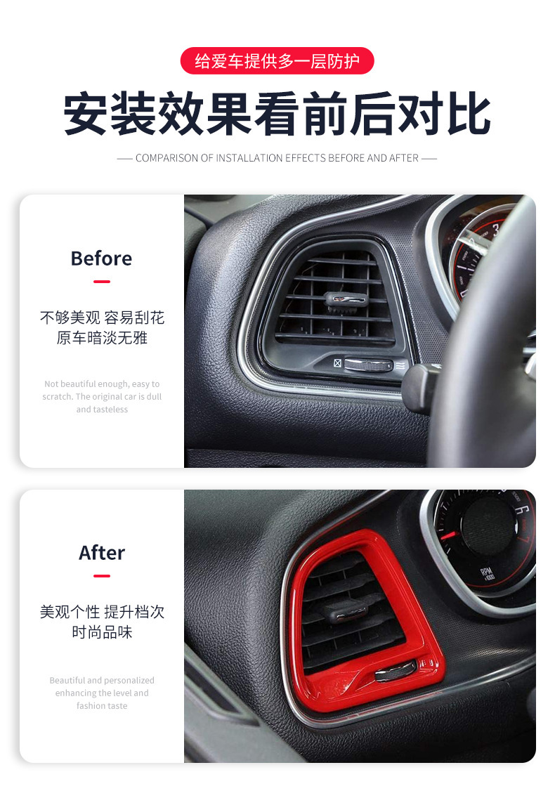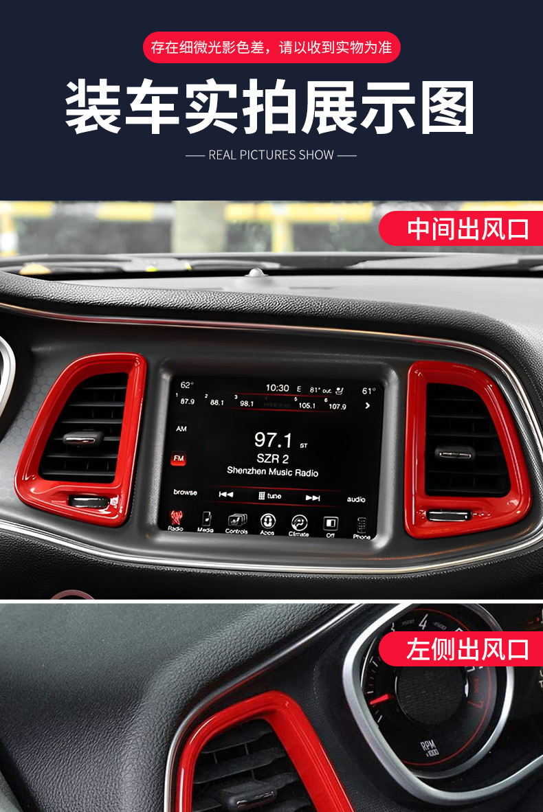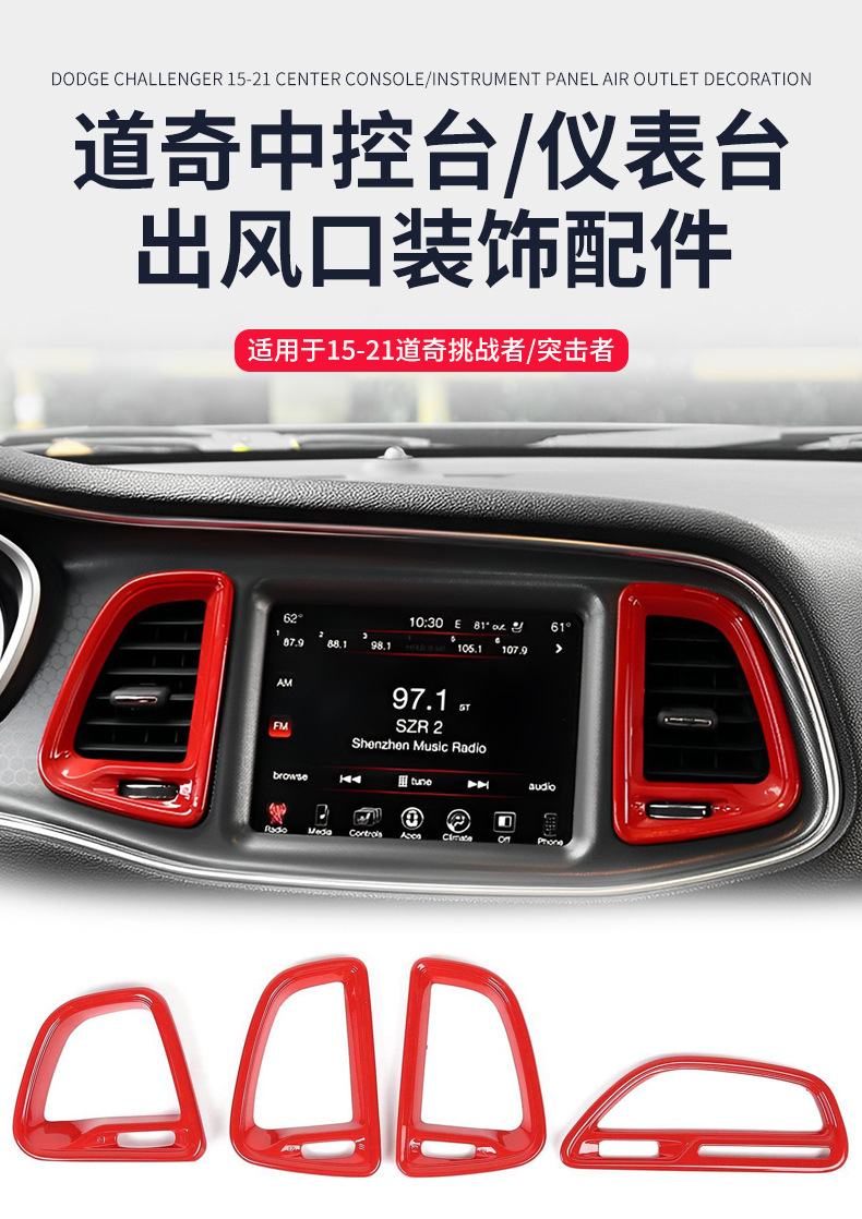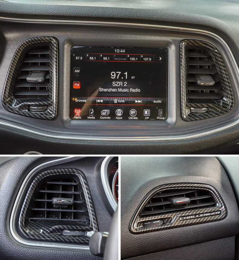 - Package Includes: One set of center console dashboard air vent decorative trim. An ideal accessory to personalize and protect your Dodge Challenger’s interior.