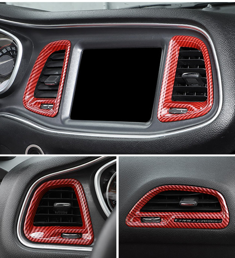 Red Carbon Fiber ABS Center Console Dashboard Air Vent Trim for Dodge Challenger (2015-2021) XC-ZST12