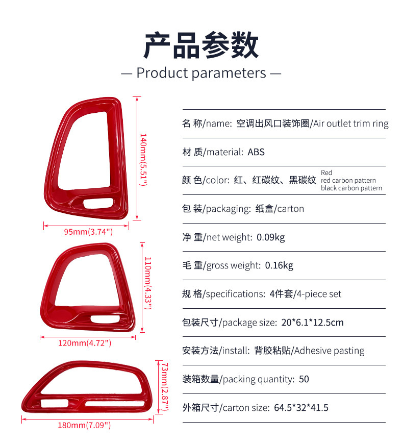 - Enhanced Interior Aesthetics: Features a vibrant red carbon fiber纹理 finish that adds a sporty and luxurious touch to your car’s interior, elevating its overall style.