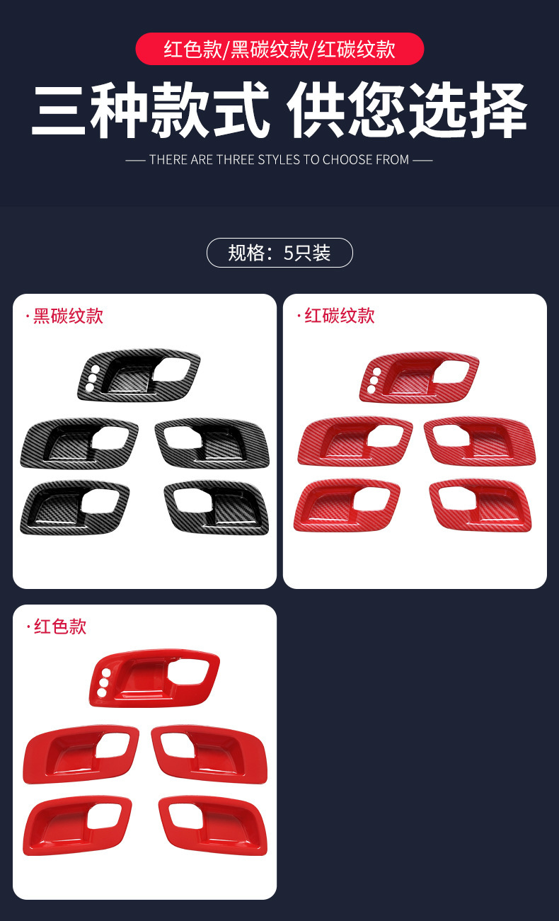 Red Carbon Fiber ABS Interior Door Bowl Trim Cover for Dodge Charger 2016-2021