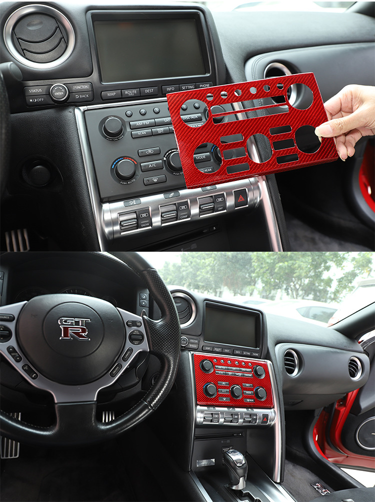 - Package Contents: Includes 1x Red Carbon Fiber Central Console Volume CD Panel Trim, offering a quick and effective interior styling upgrade for your Nissan GTR R35.
