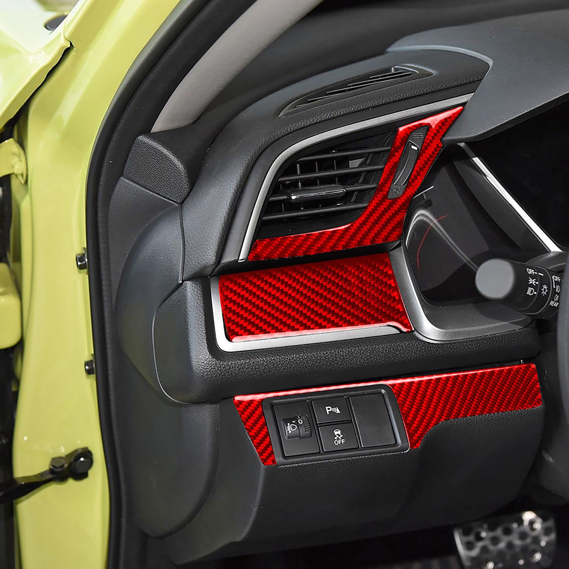 Red Carbon Fiber Central Control Panel Cover Trim for Honda Civic 10th Gen