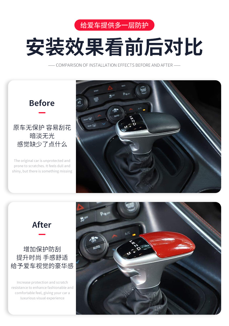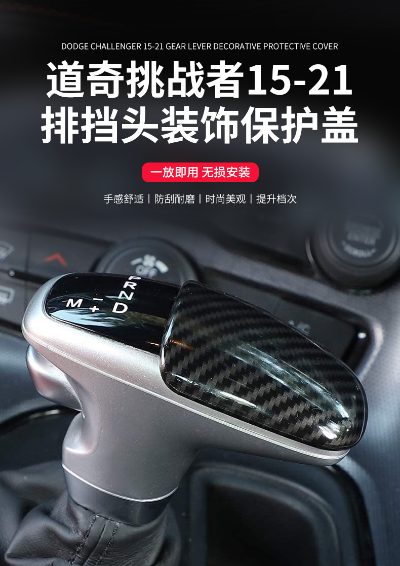 Red Carbon Fiber Shift Knob Cover Trim for Dodge Challenger 2015-2021