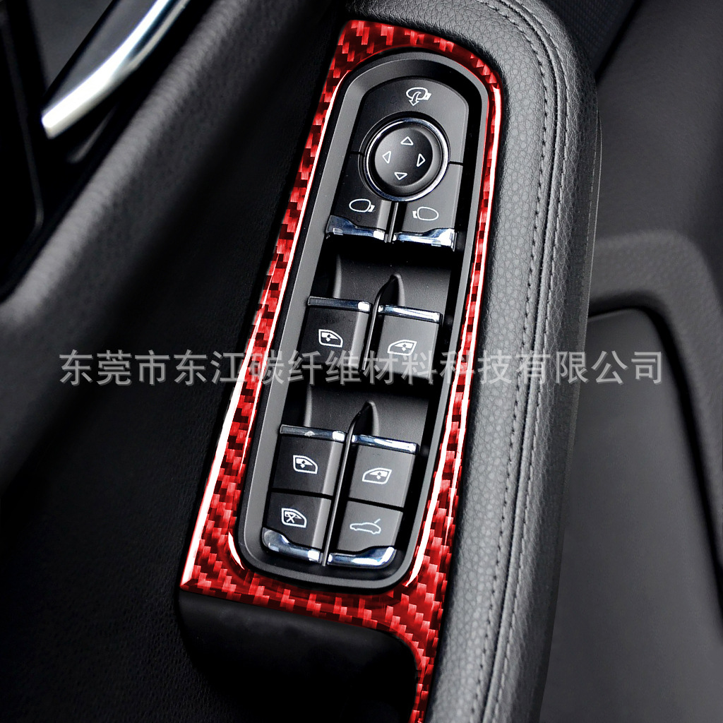 Red Carbon Fiber Window Lift Switch Panel Trim Cover for Porsche Cayenne Macan Interior Modification