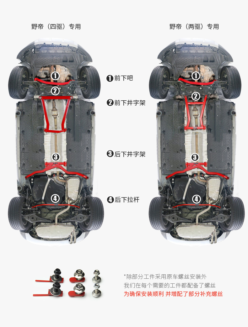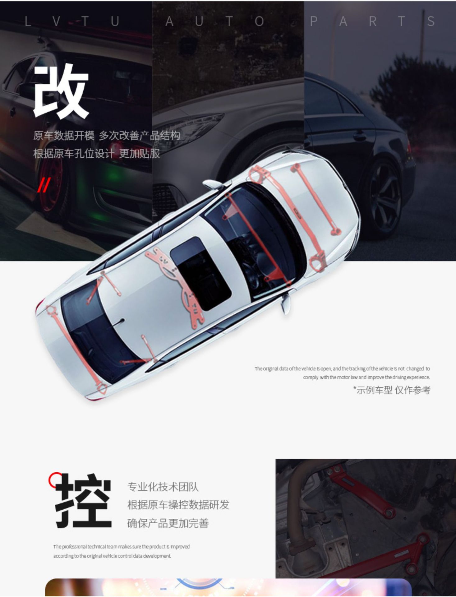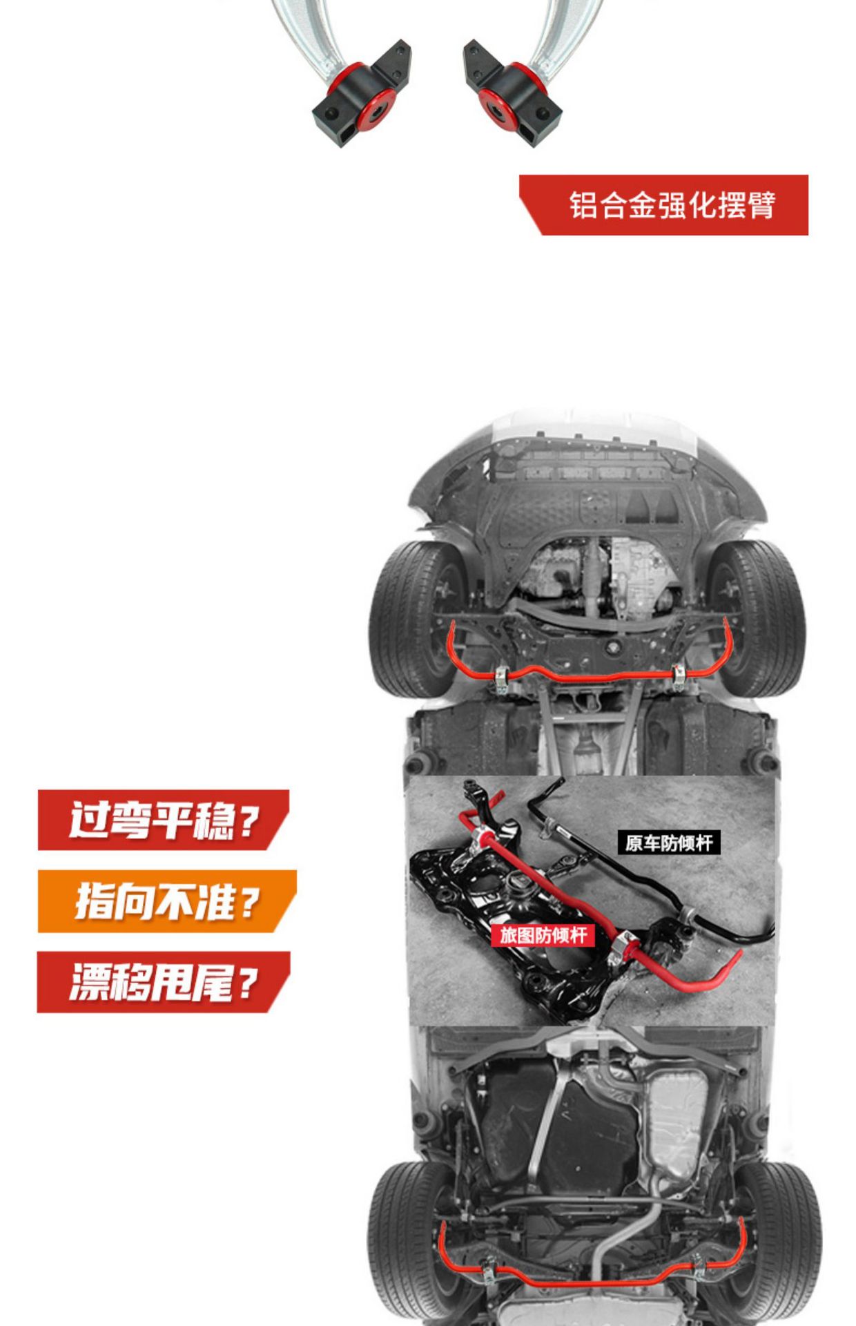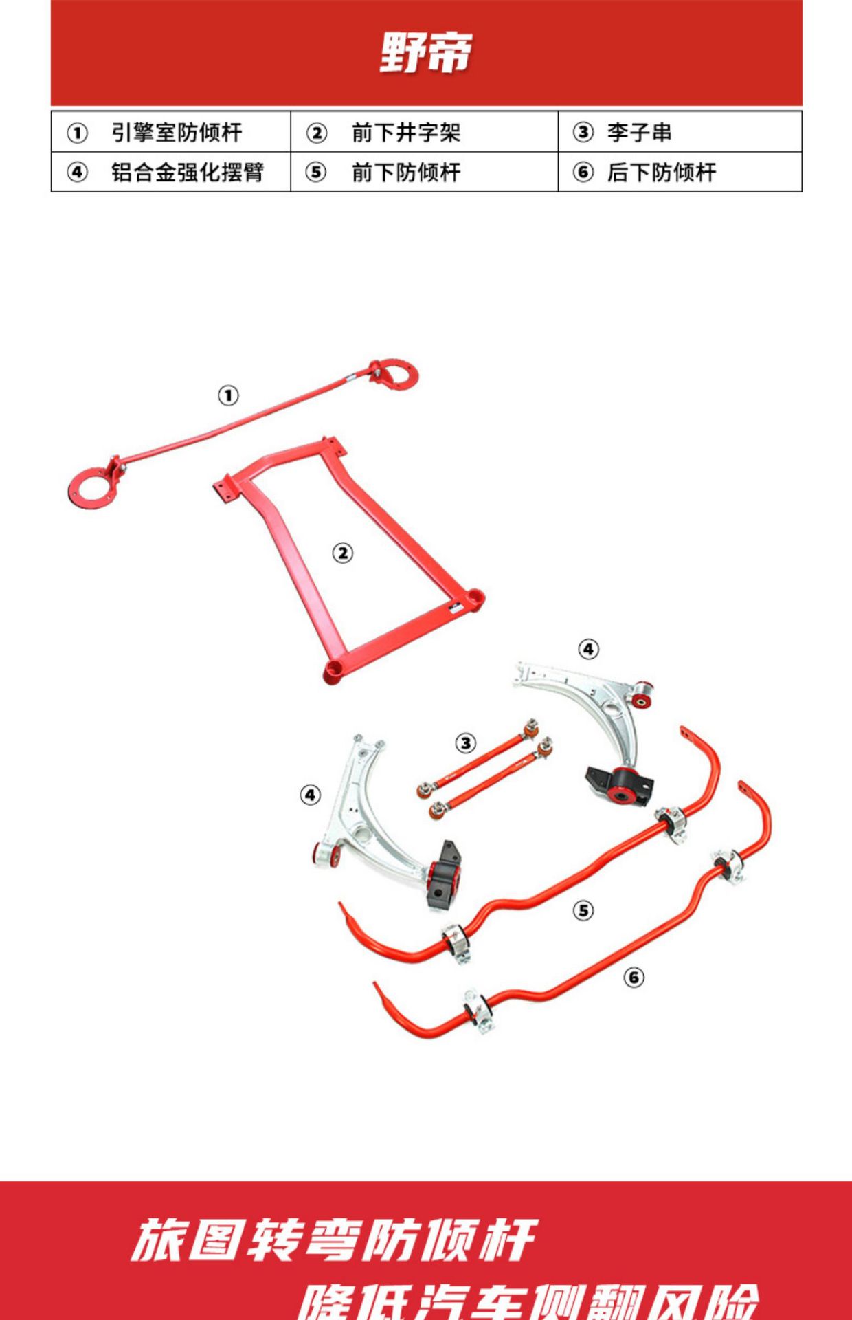 - Enhanced Driving Performance: Includes front upper strut bar, rear lower control arms, and anti-roll bar options to significantly reduce body roll, improve steering response, and stabilize handling during aggressive driving.