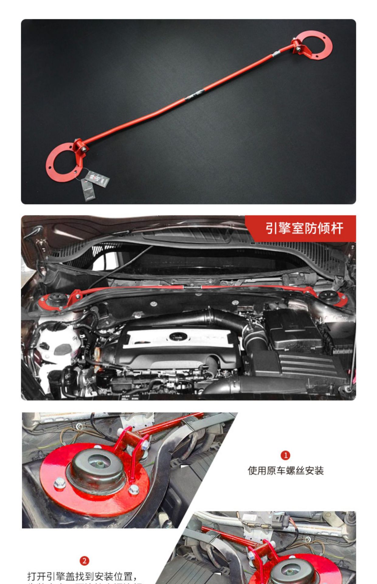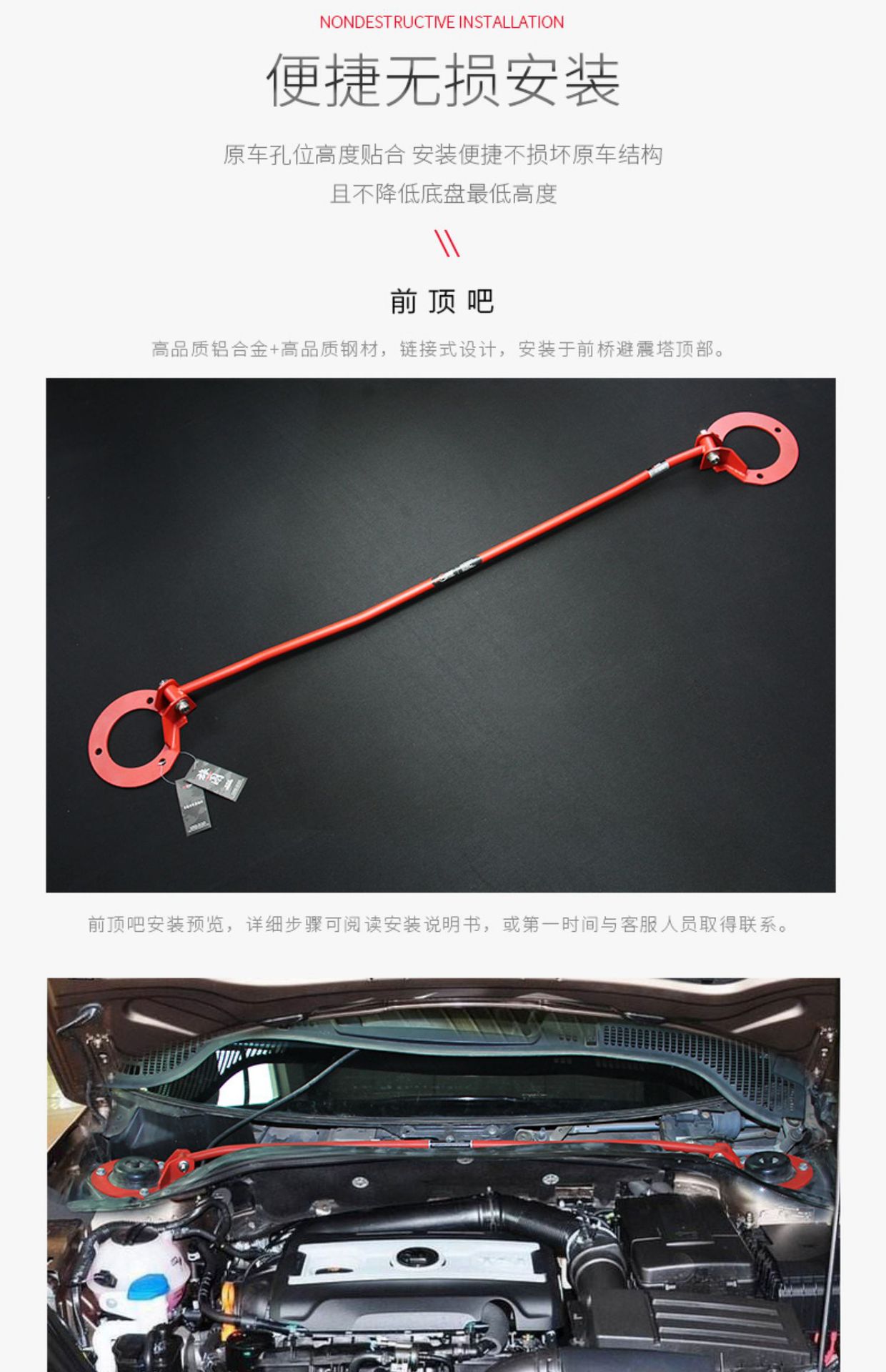 Red Chassis Reinforcement Front Upper Strut Bar Rear Lower Control Arm for Skoda Yeti Hao Rui