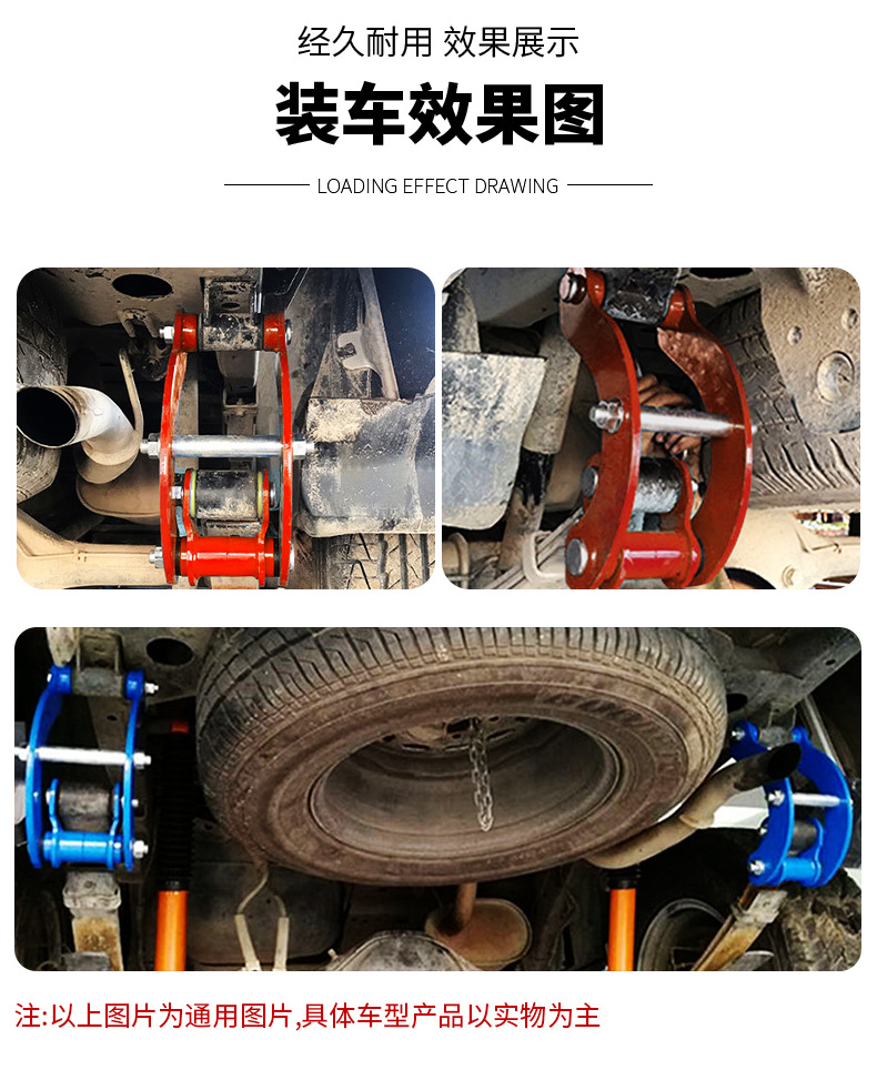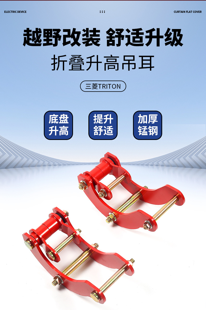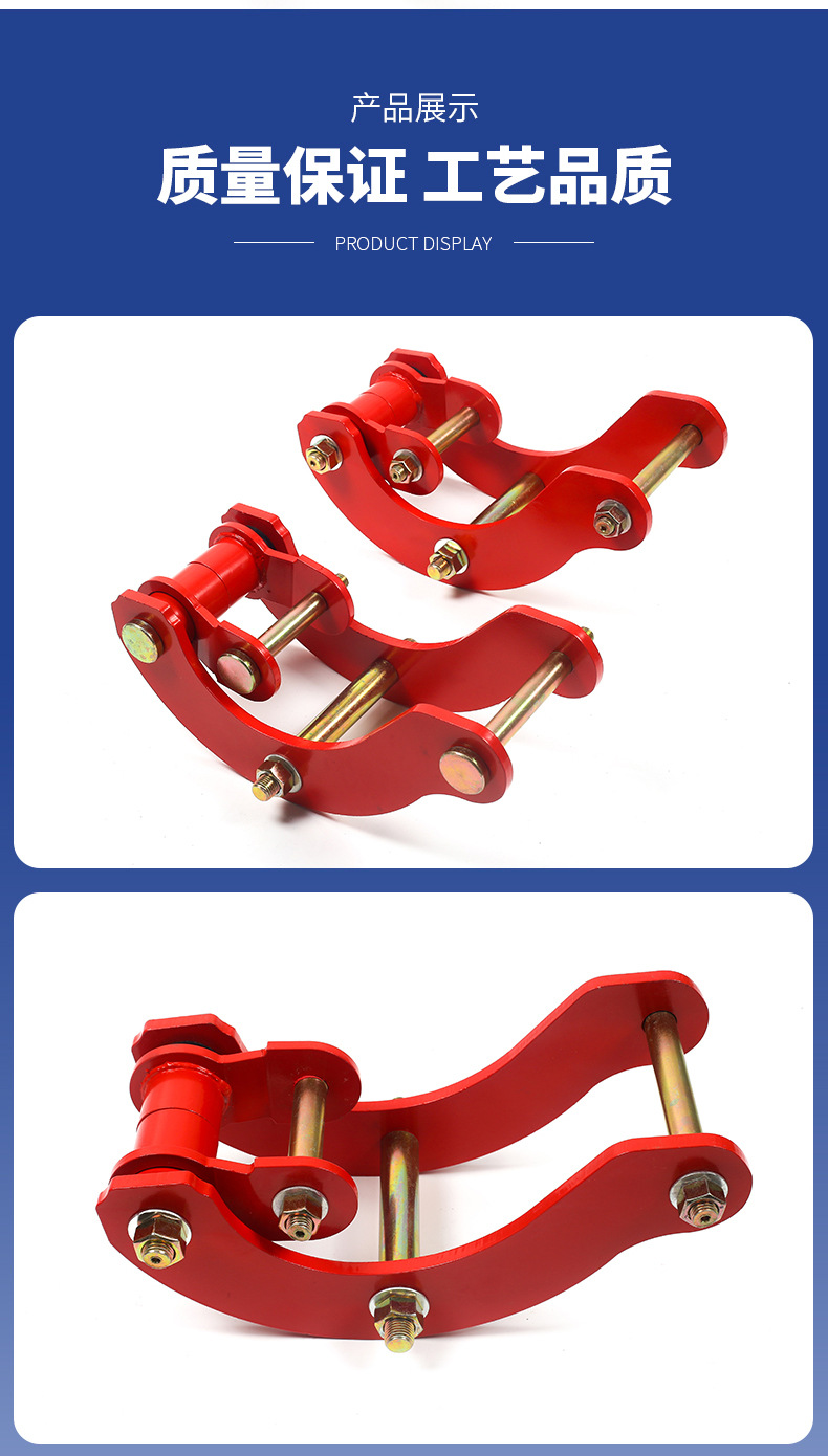 - Enhanced Vehicle Stance: These comfort lift shackles provide a noticeable lift, improving the vehicle’s aesthetic appeal and offering increased ground clearance for off-road adventures.