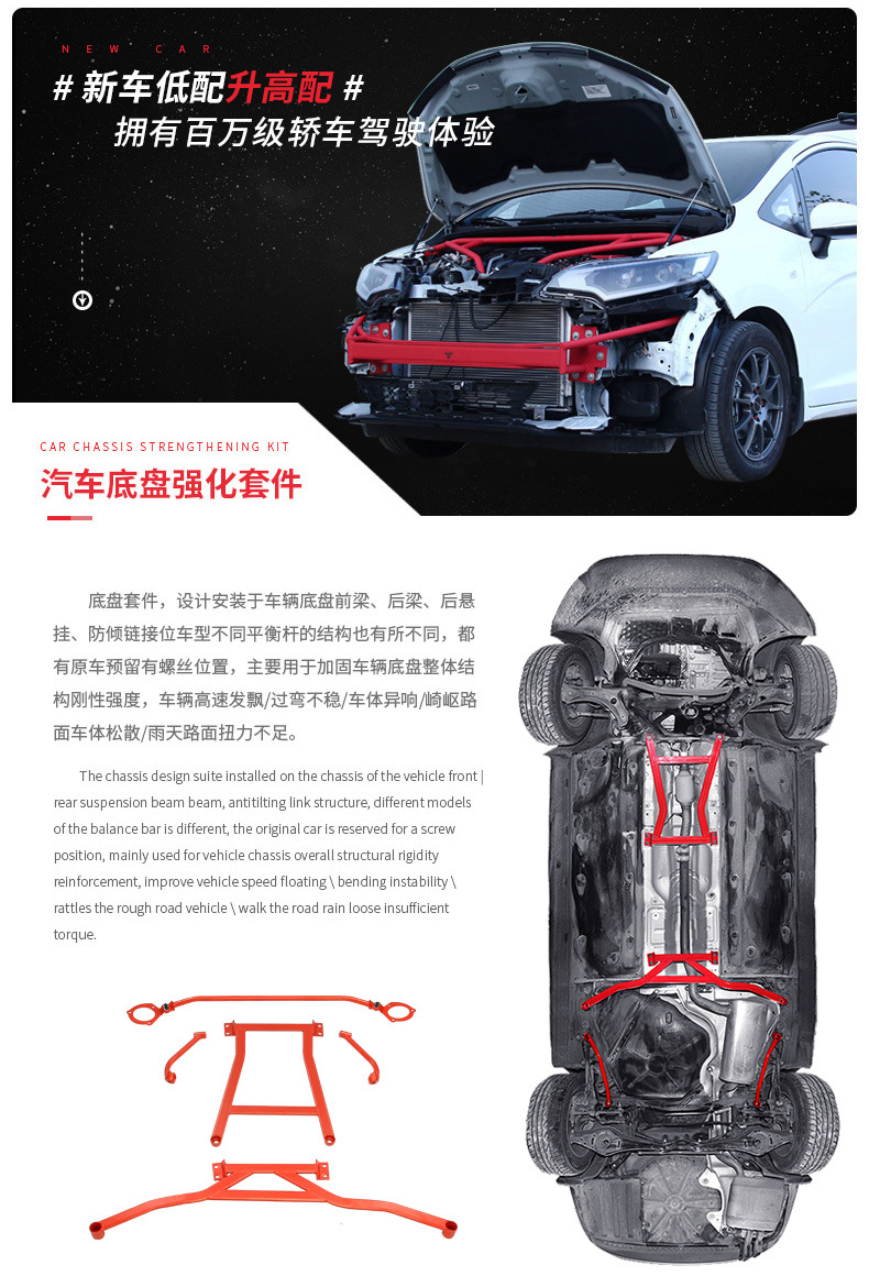 - Enhanced Driving Performance: Significantly improves vehicle stability, reduces body roll during cornering, and enhances overall handling and driving comfort by strengthening the chassis and suspension system.