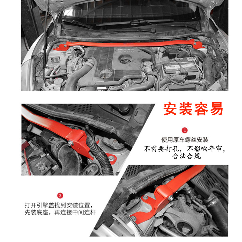 Red Front Strut Bar Tower Brace Aluminum Chassis Reinforcement for Nissan Tiida Livina Bluebird