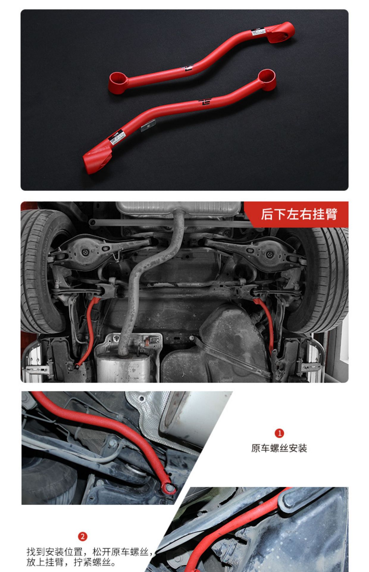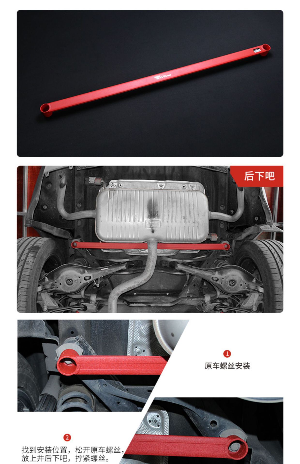 - Sporty Red Finish: Features a vibrant red powder-coated finish that adds a distinctive, performance-oriented aesthetic to your vehicle’s engine bay or undercarriage.