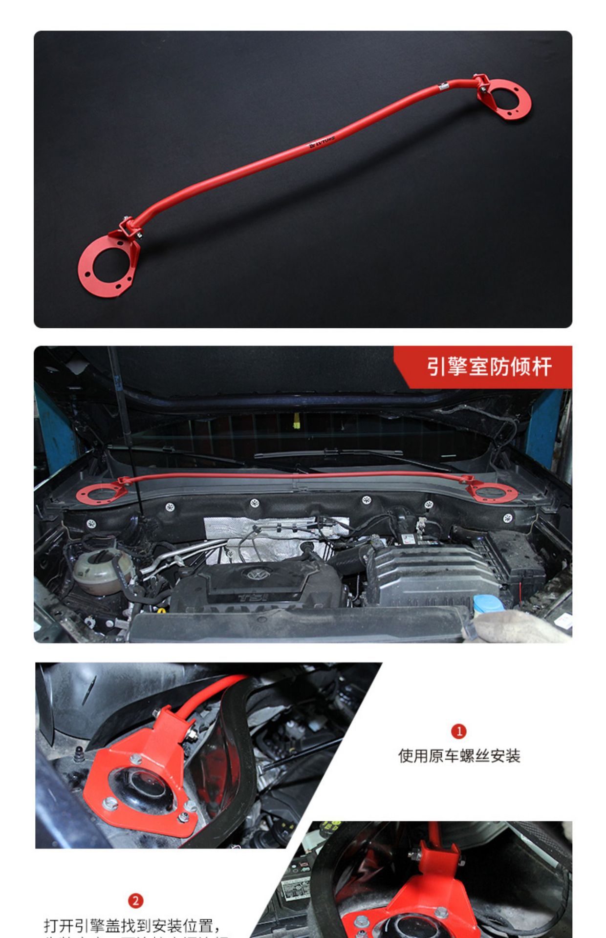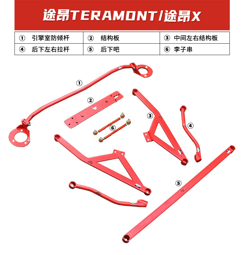 Red Front Upper Strut Bar Anti-Roll Sway Bar Subframe Reinforcement for VW Teramont Atlas Teramont X Viloran 2017-Present