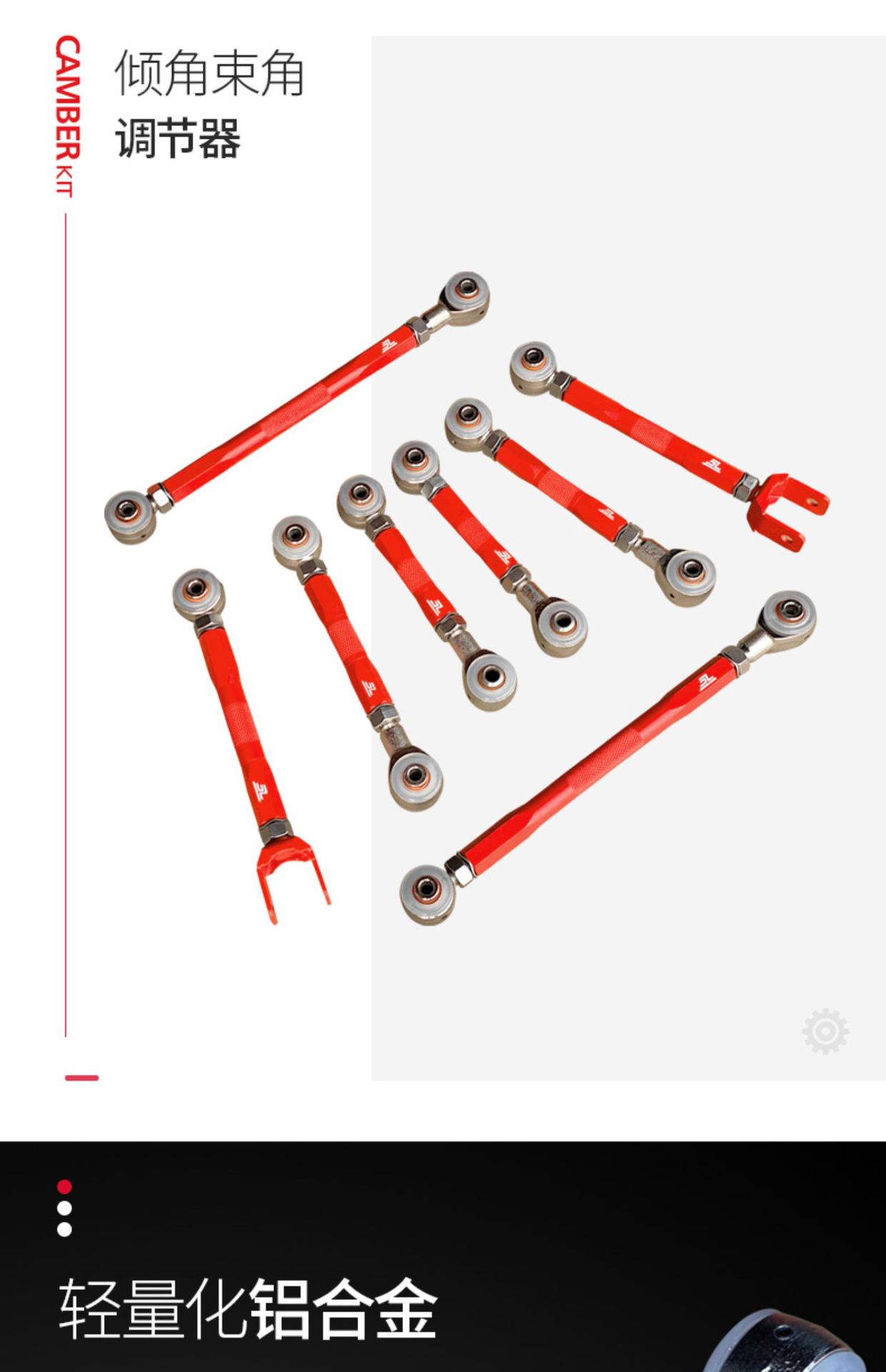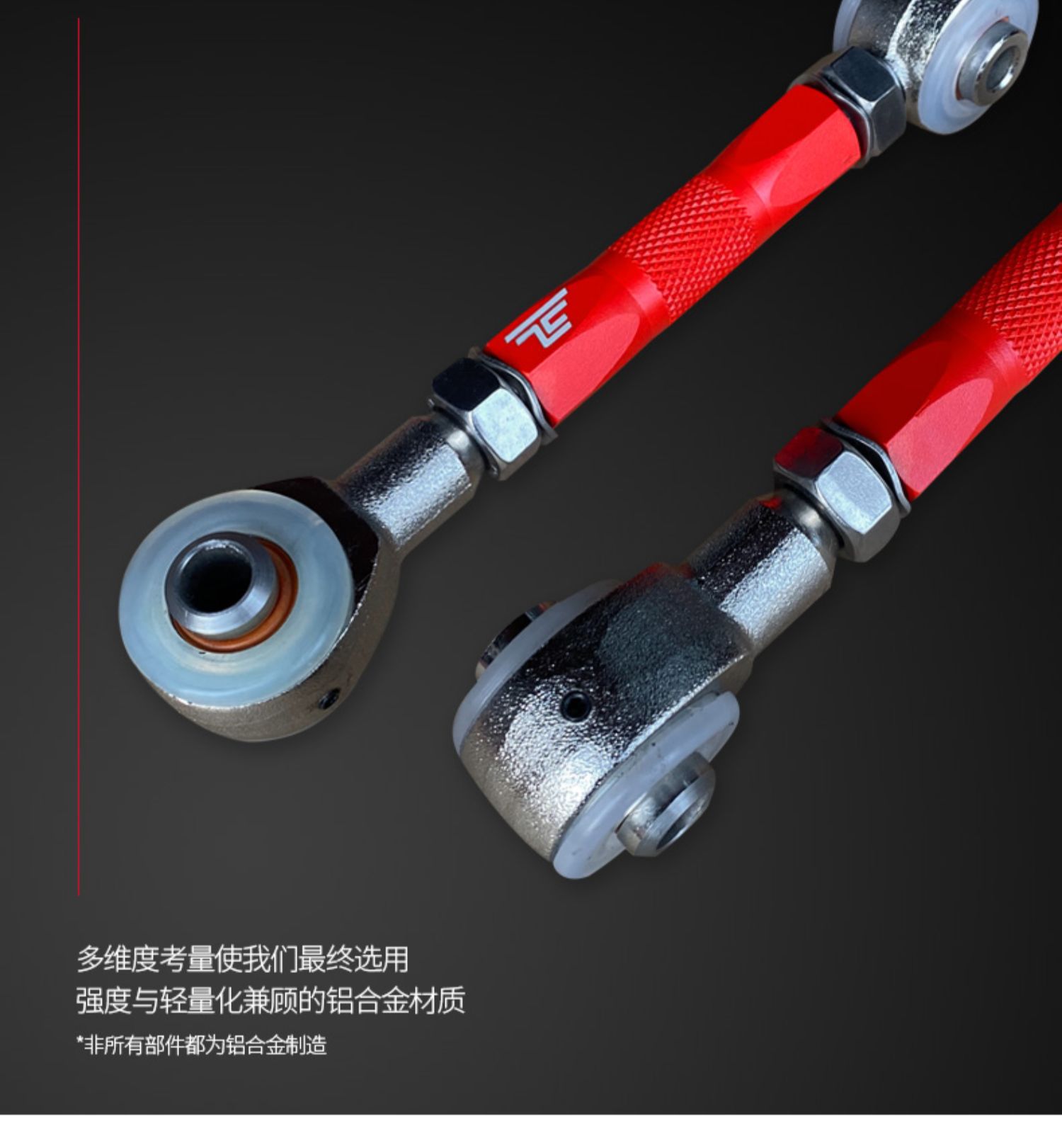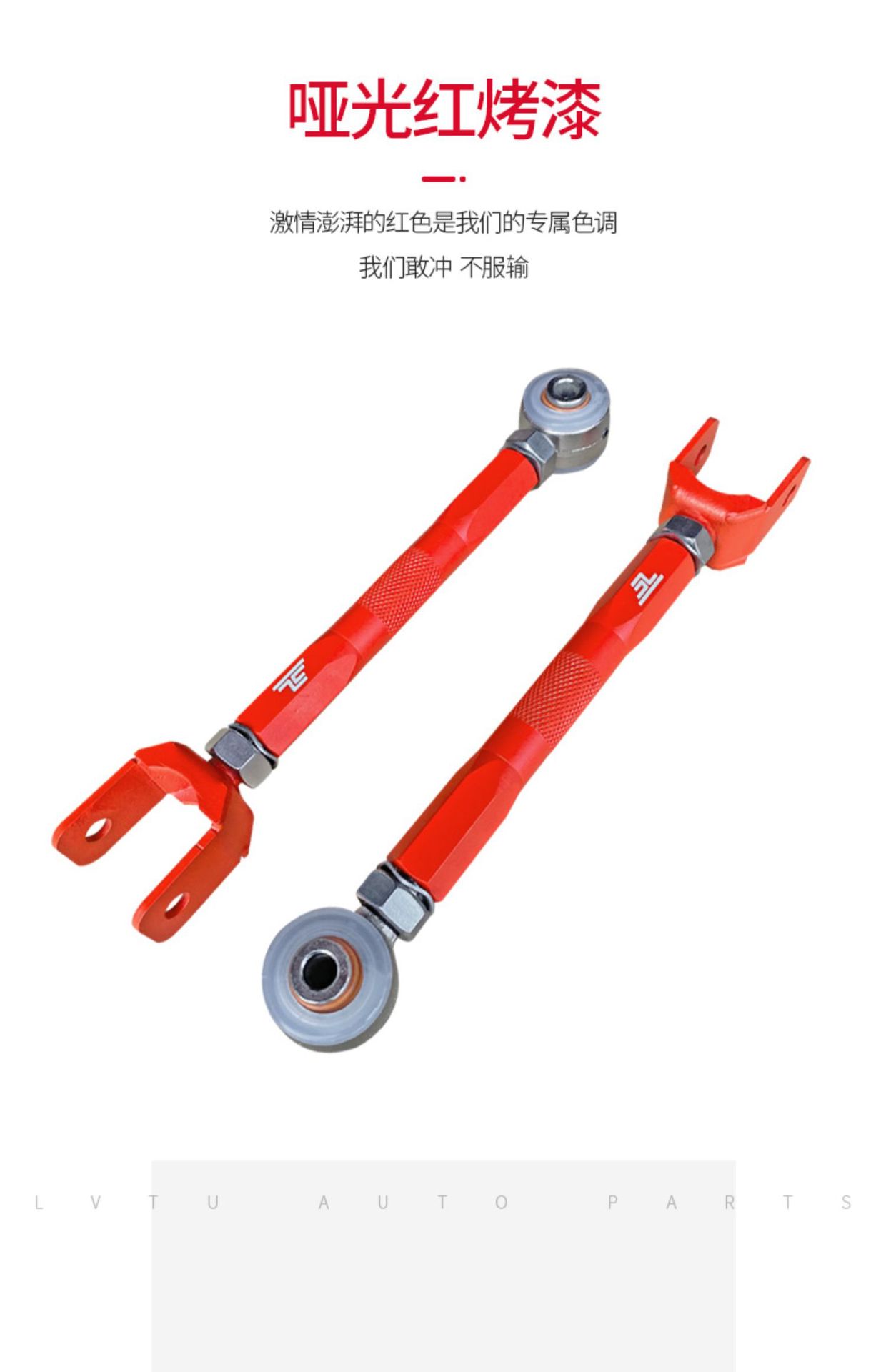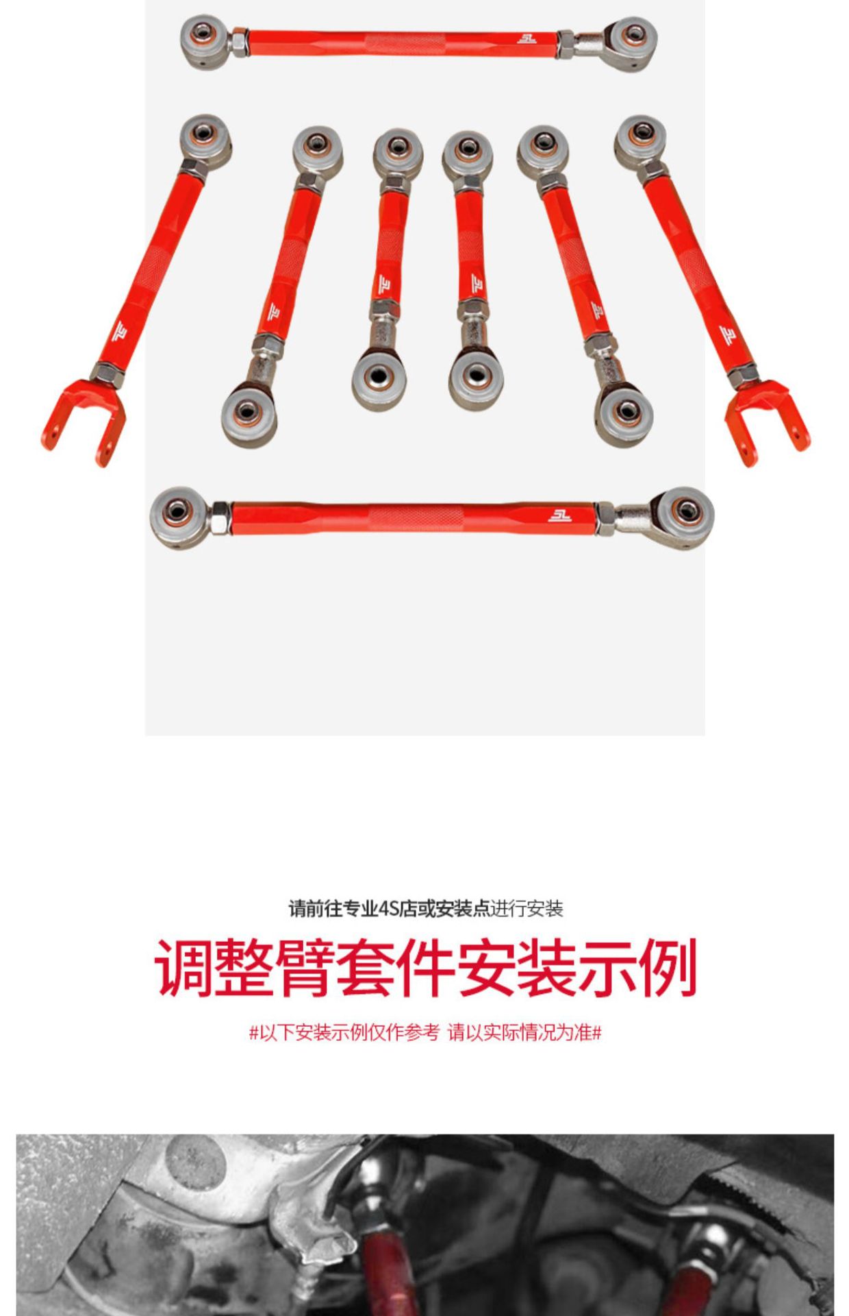 - Comprehensive Kit: Package includes 1 pair of Rear Camber Arm (Red), 1 pair of Rear Upper Slanted Pull Arm (Red), 1 pair of Rear Lower Slanted Pull Arm (Red), and 1 pair of Rear Toe Arm (Red), providing a complete solution for rear suspension tuning.