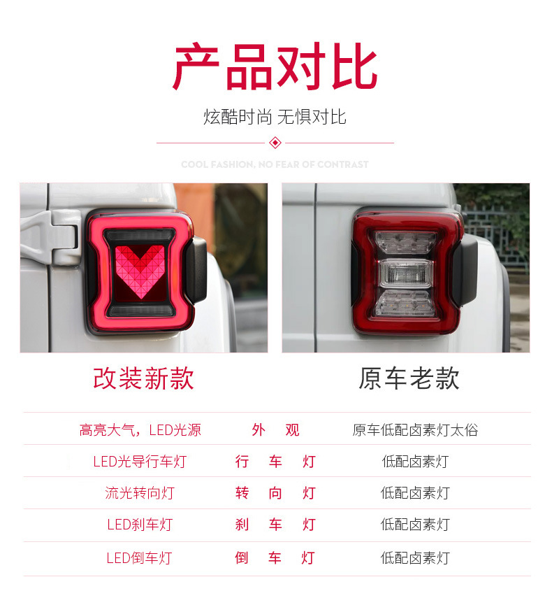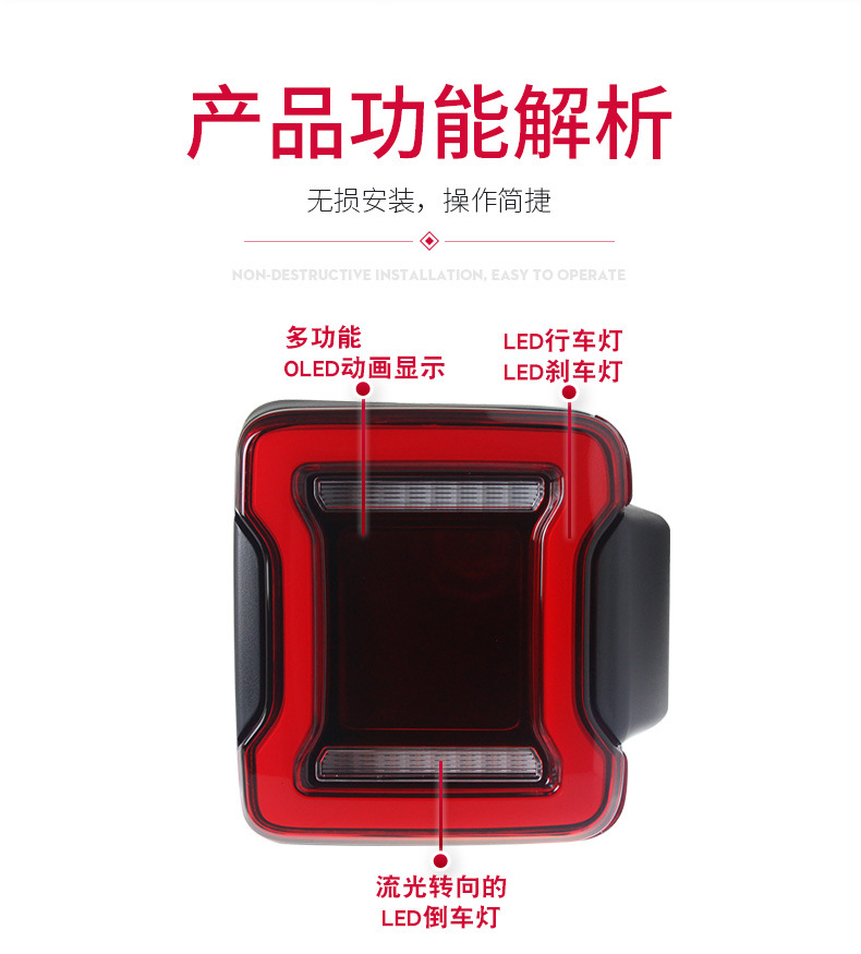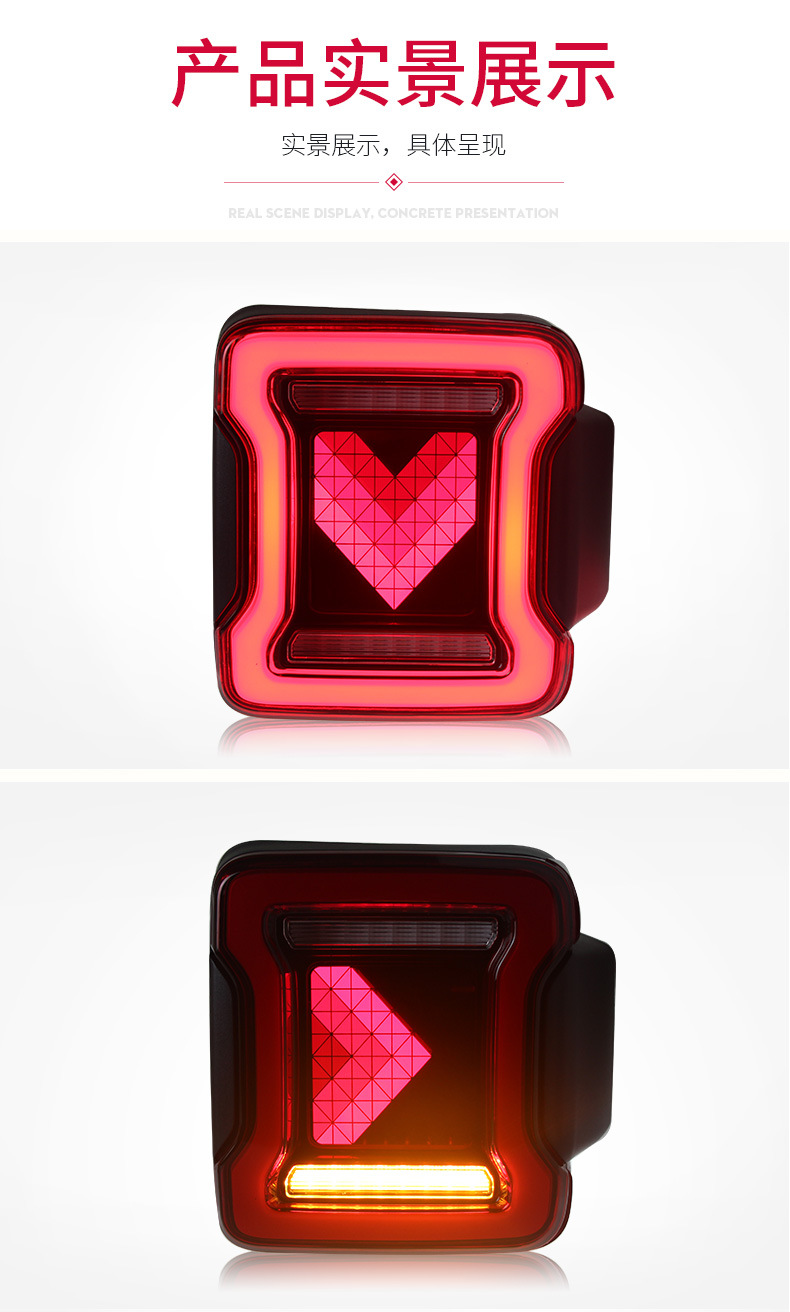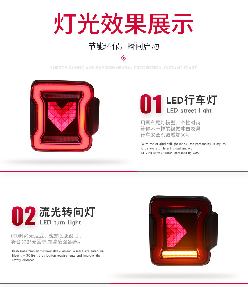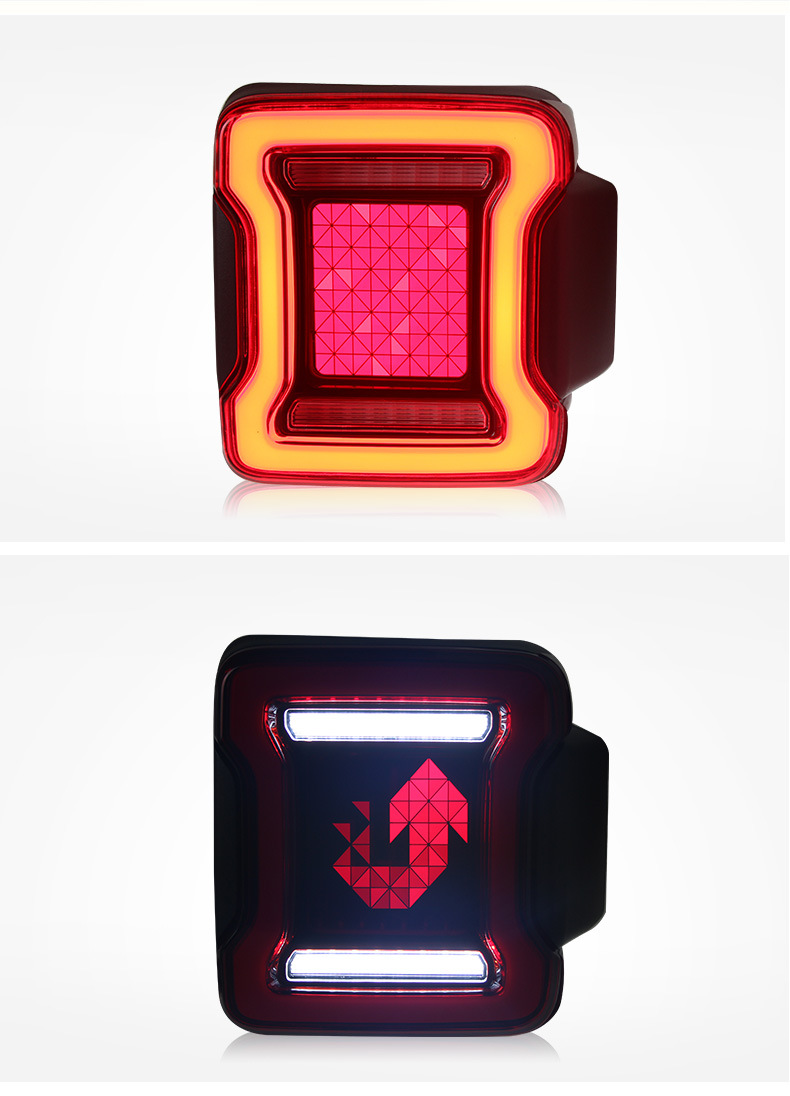 - Enhanced Styling: Features modern LED technology with running lights, brake lights, and sequential turn signals in both red and smoked color options, adding a distinctive and aggressive aesthetic to your Wrangler JL.