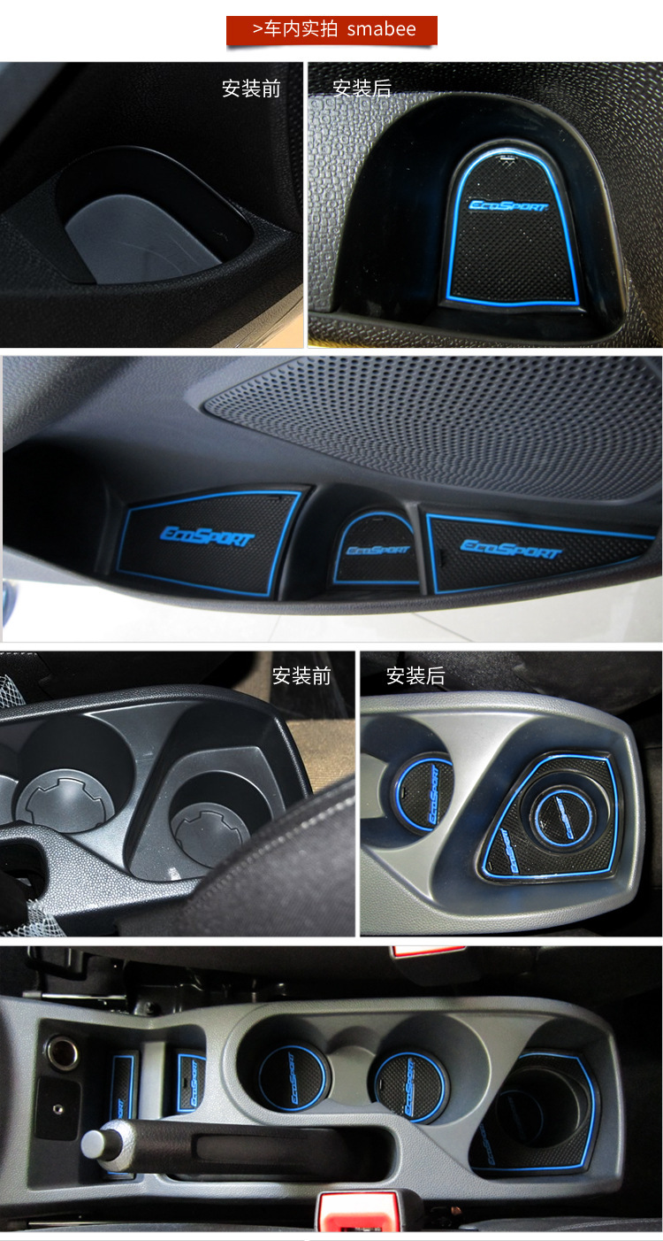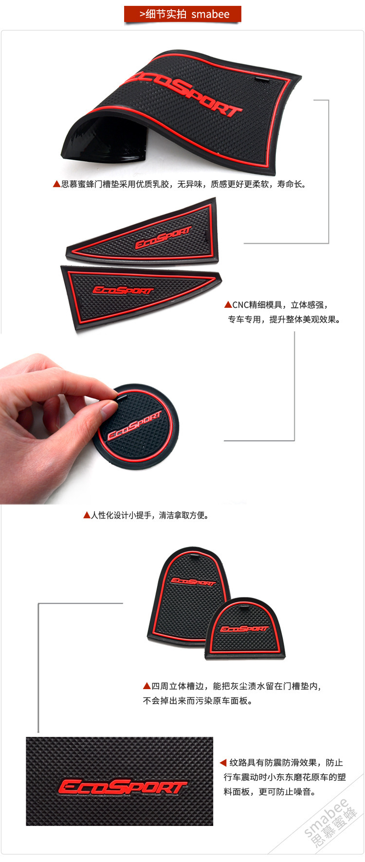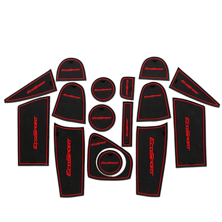Red Trim Anti-Slip Door Slot Mats Cup Holder Center Console Storage Pad for Ford EcoSport 2013-2019
