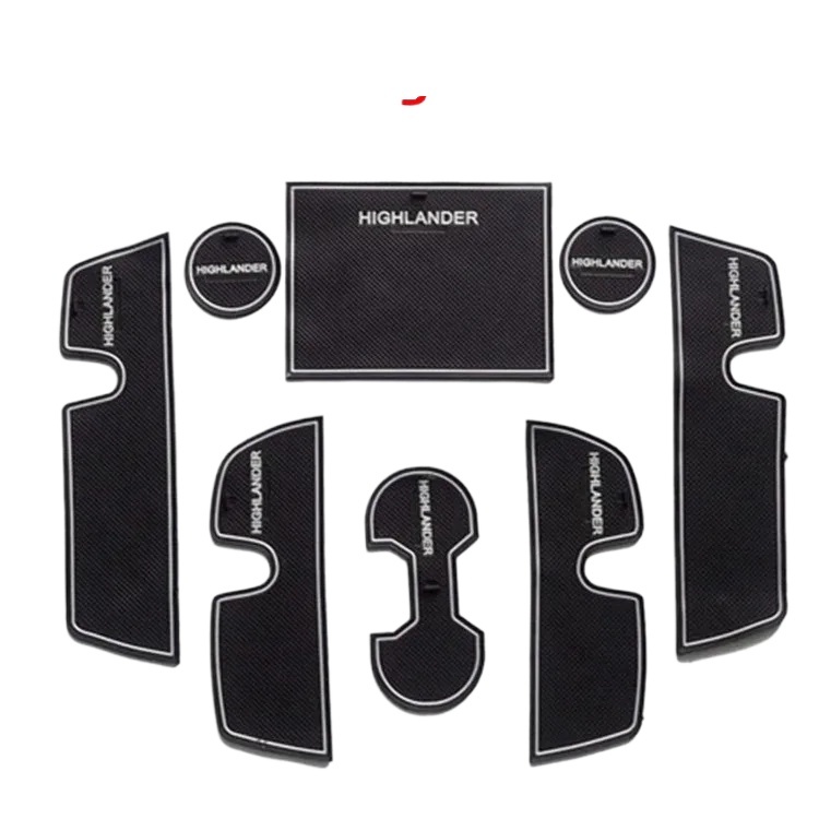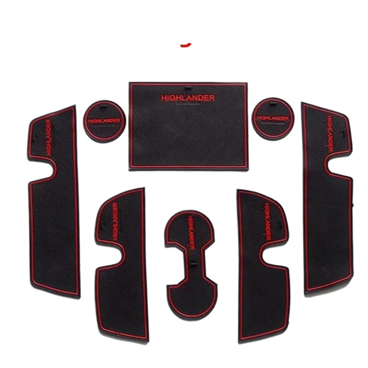 Red Trim Car Door Slot Mat Set for Toyota Highlander 2009-2014, Non-Slip Cup Holder Pads Interior Accessories