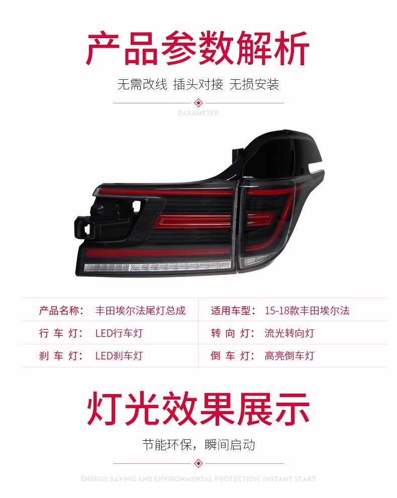 - Complete Tail Light Assembly: Each package includes a complete tail light assembly set (Alphard or Vellfire option), offering a comprehensive solution to restore or upgrade your vehicle’s rear lighting system.