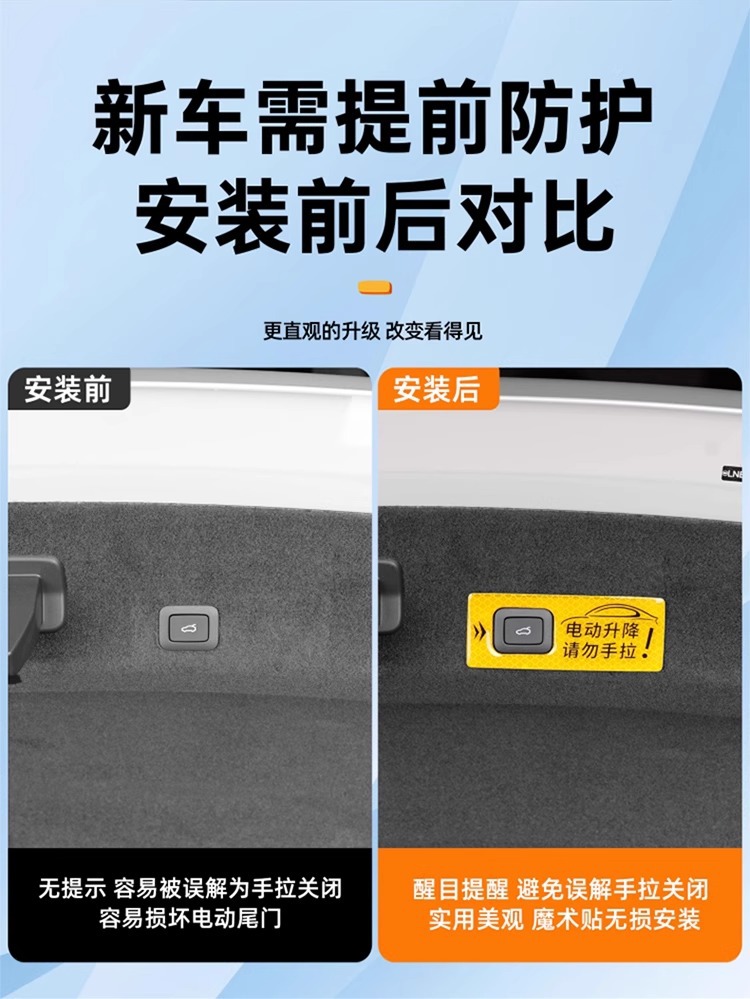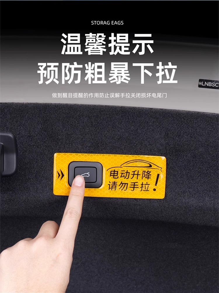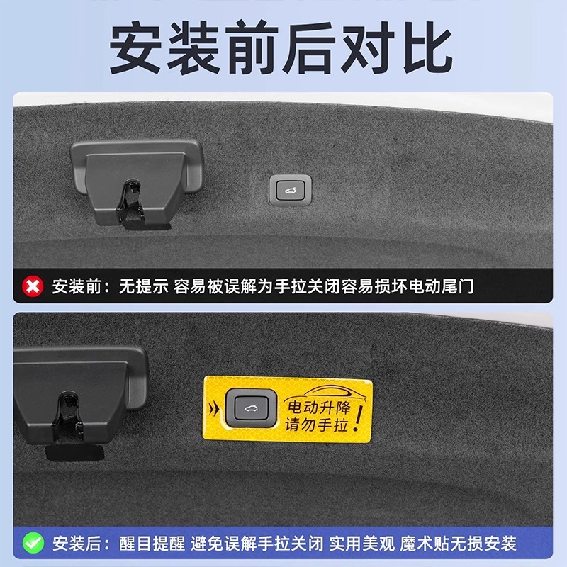 - Performance-Driven Design: Clearly alerts users to the electric auto-lift function, preventing manual force on the tailgate, as shown, safeguarding the mechanism.