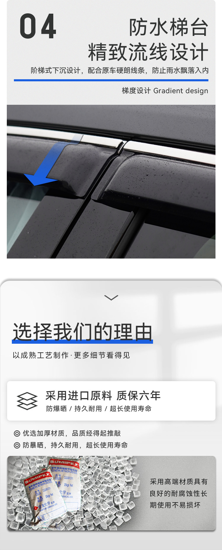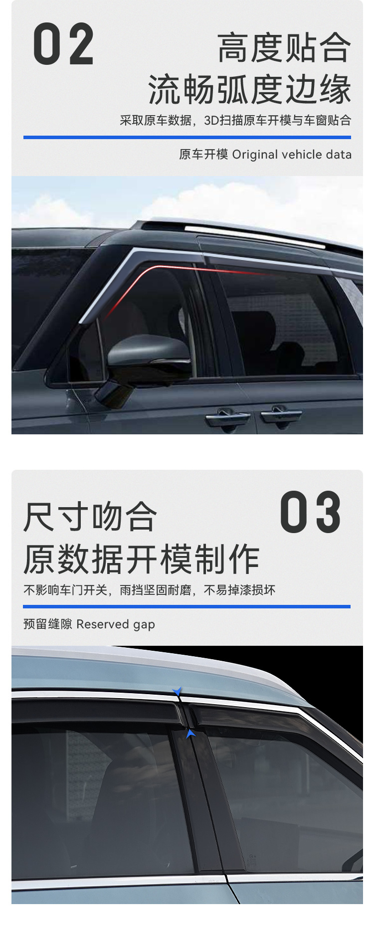 - Performance-Driven Design: Enhances cabin ventilation, reduces wind noise, and prevents rain entry, allowing for comfortable airflow even in inclement weather.