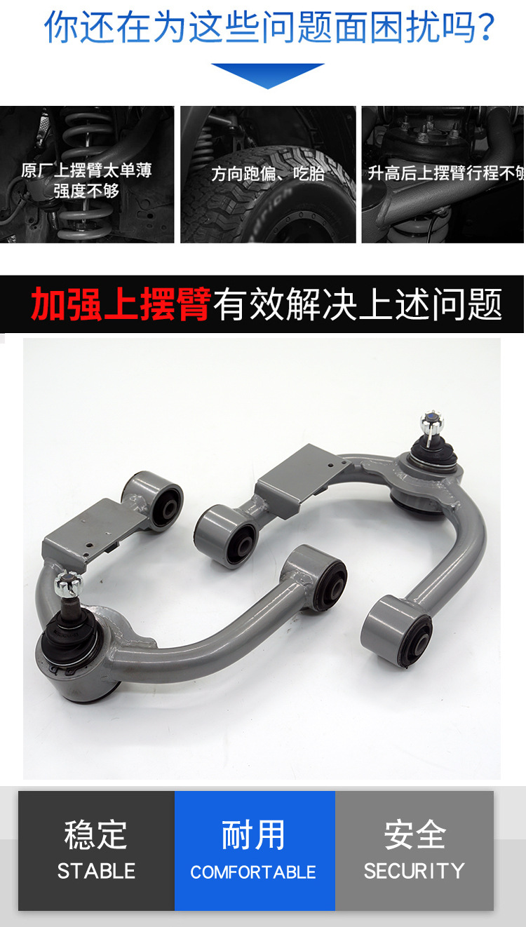 - Package Contents: Includes 1x Reinforced Upper Control Arm, vital for maintaining proper wheel alignment and tire wear.